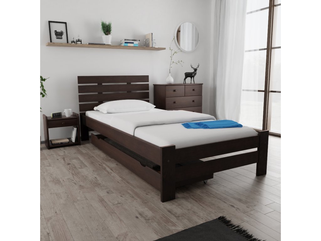 Für Liebhaber dunkler Farbtöne ist das Dekor Nussbaum ideal. Die nussbaumfarbenen Betten erinnern an die Farbe von dunkler Schokolade. Im Inneren des Schlafzimmers wirkt er dominant und geschmackvoll. Der Kontrast zwischen einer hellen Einrichtung in Creme- oder Weißtönen und einem Bett aus natürlichem Nussbaumholz wirkt modern.