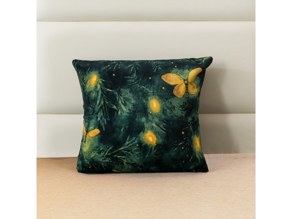 Kissenbezug aus Mikrofleece YELLOW BUTTERFLY 45x45 cm, dunkelgrün