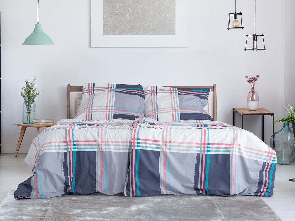 Hochwertige Bettwäsche aus Baumwollkrepp besteht aus 100 % erstklassiger gekämmter Renforce-Baumwolle und ist wegen ihrer Weichheit, hohen Saugfähigkeit und Atmungsaktivität sehr beliebt. Die Bettwäsche Split mit geometrischem Motiv eignet sich sowohl für moderne als auch für klassische Innenräume.