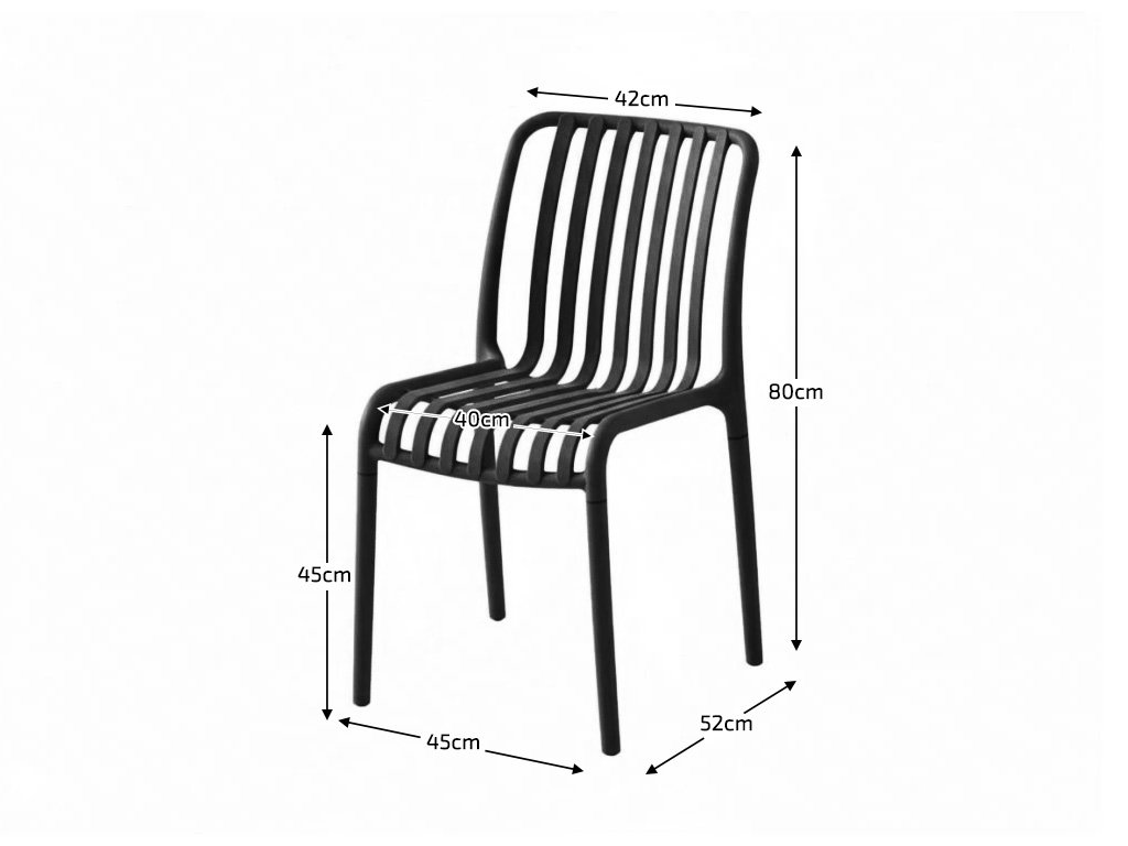- Kunststoff ist nicht UV-beständig, der Stuhl sollte vor Sonneneinstrahlung geschützt werden