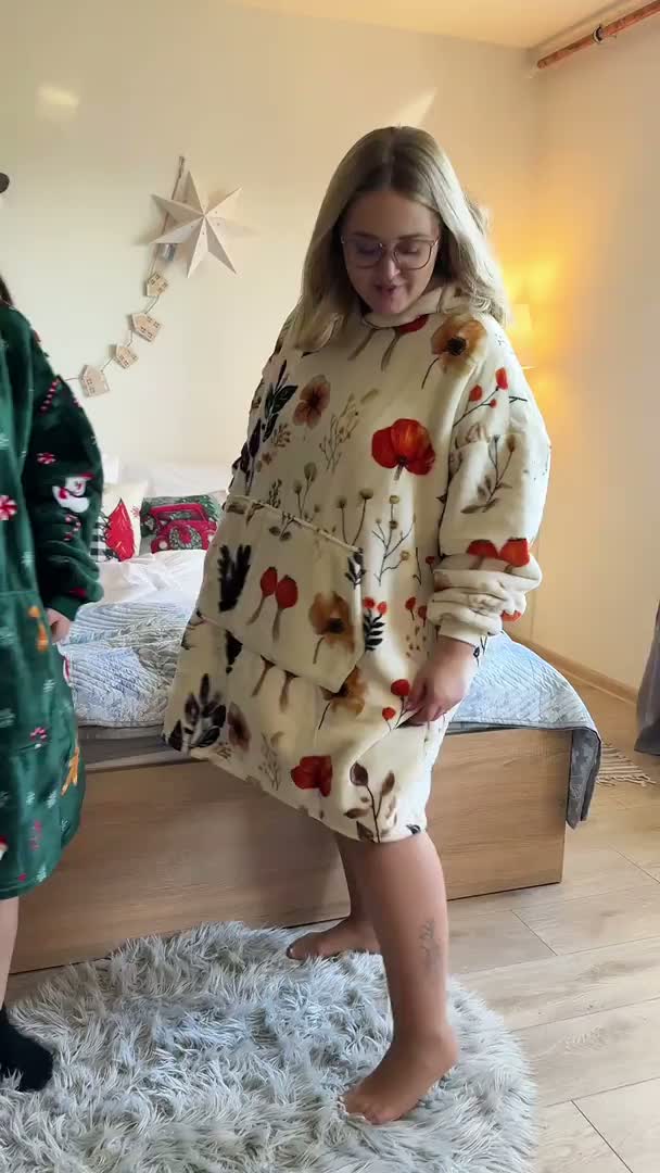 Lammfellimitat-Decke mit Ärmeln und Kapuze PAPAVA, cremefarben