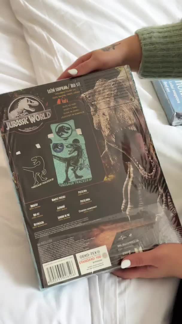 Leuchtende Baumwollbettwäsche JURASSIC WORLD, blau