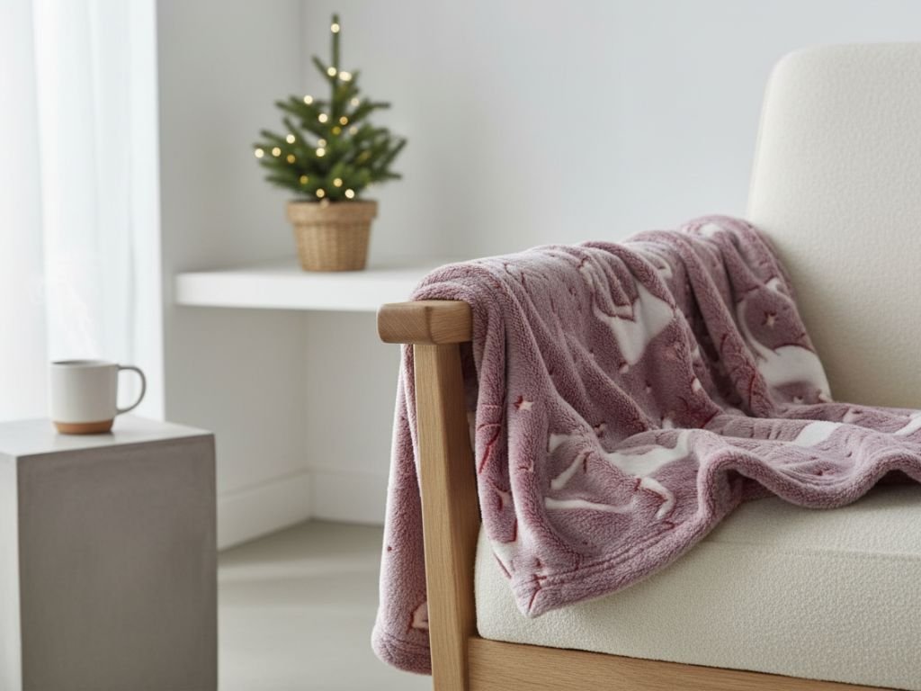 Leuchtende weihnachtliche Mikroplüsch-Decke STAR DEER, rot