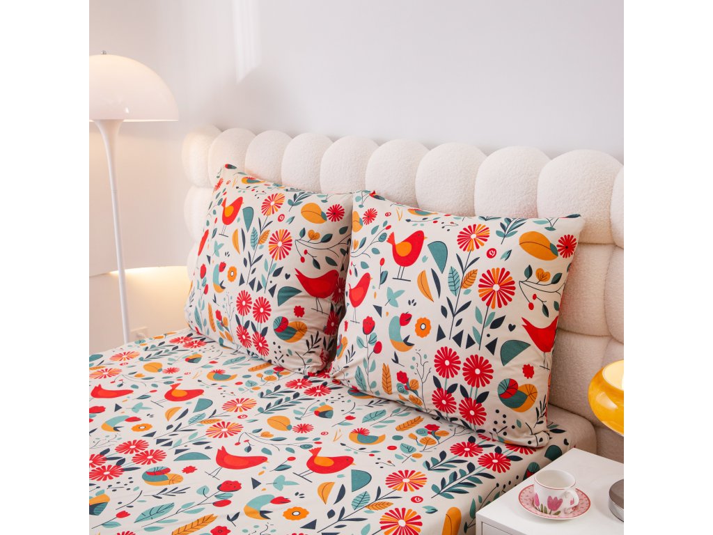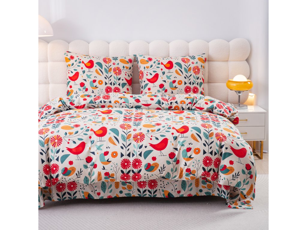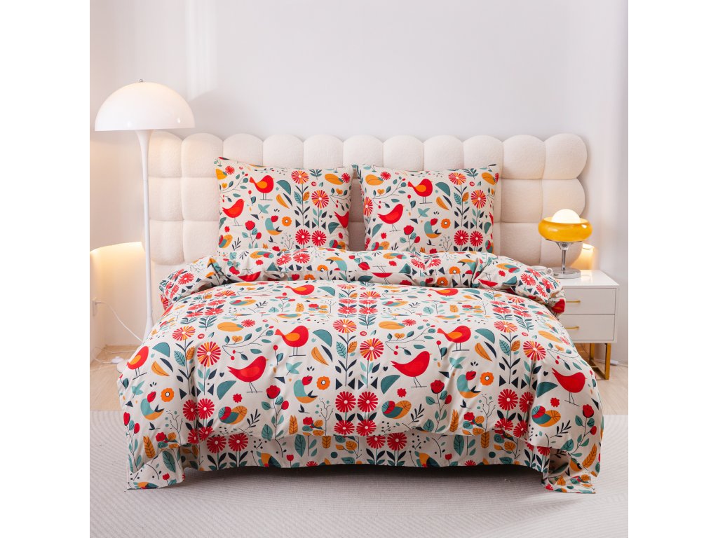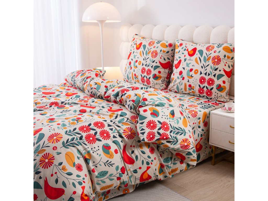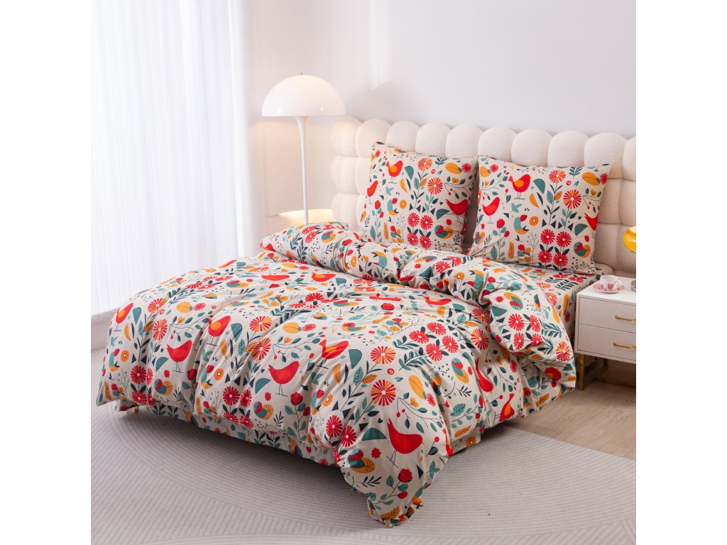 Mikrofaser-Bettwäsche RETRO VOGEL bunt