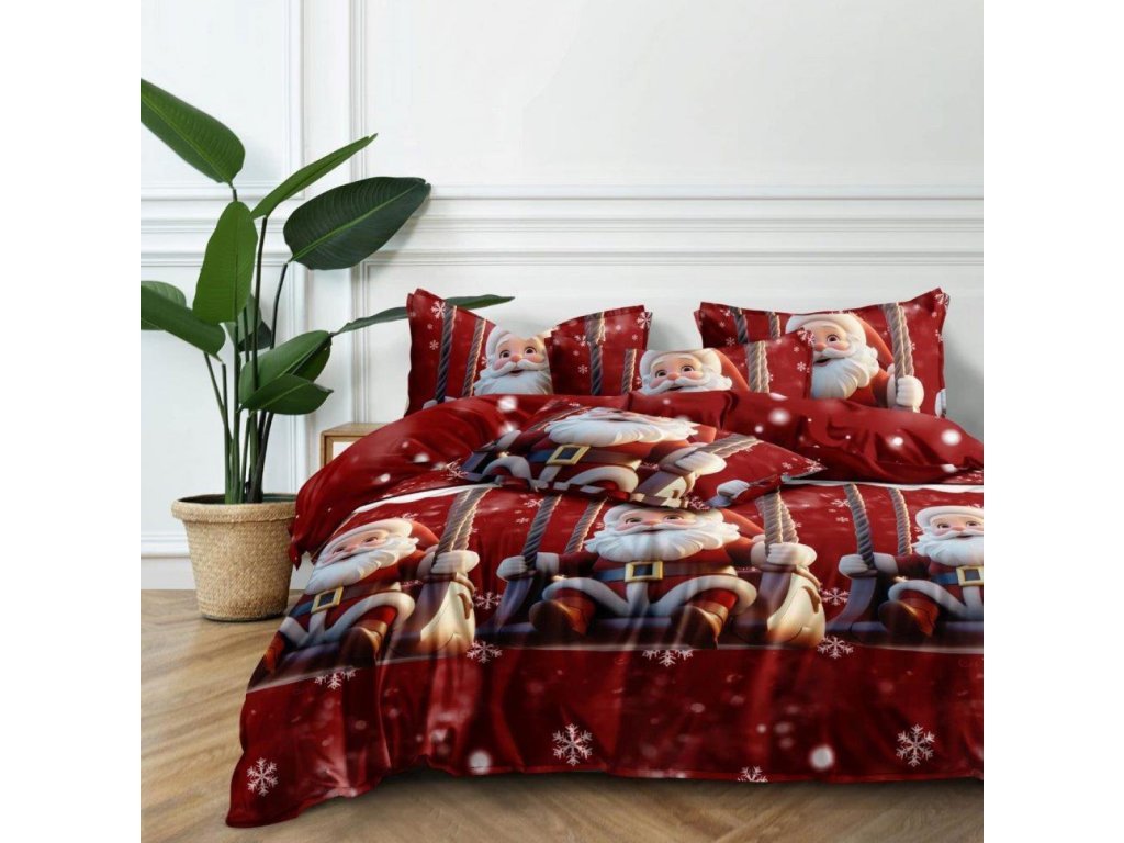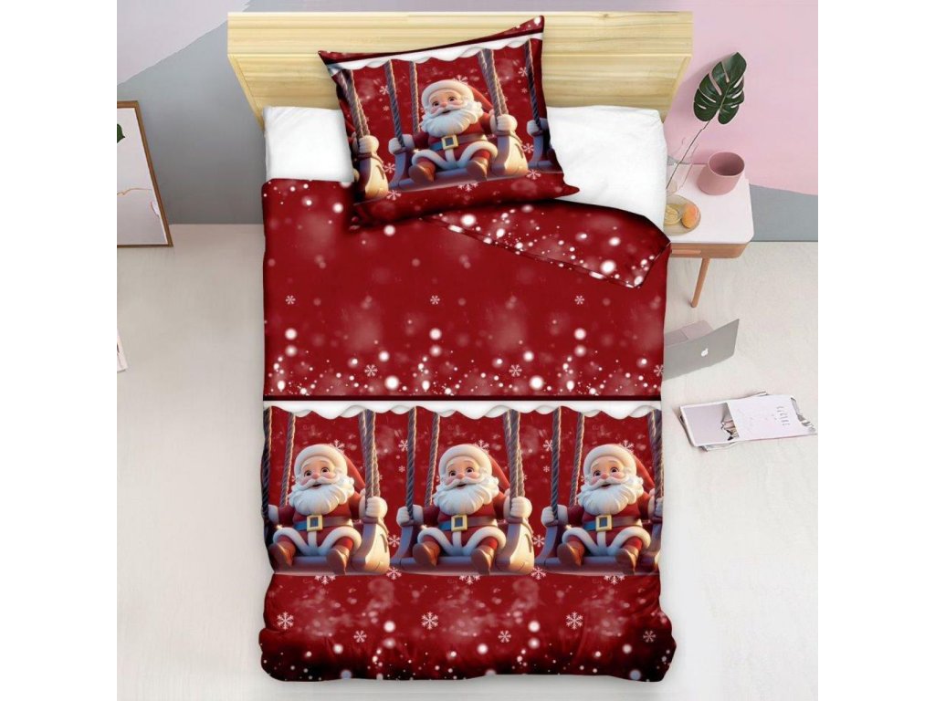 Mikrofaser-Bettwäsche SANTA ON A SWING rot