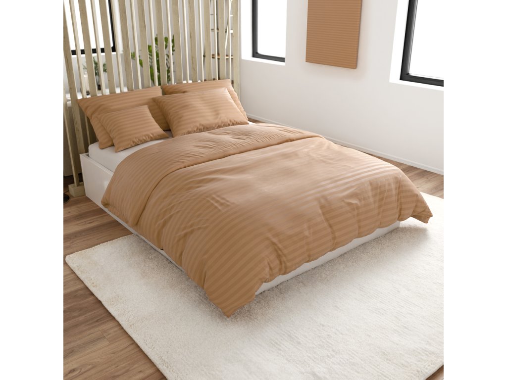 Mikrofaser Hotel-Bettwäsche JASMINE braun - Streifen 2 cm