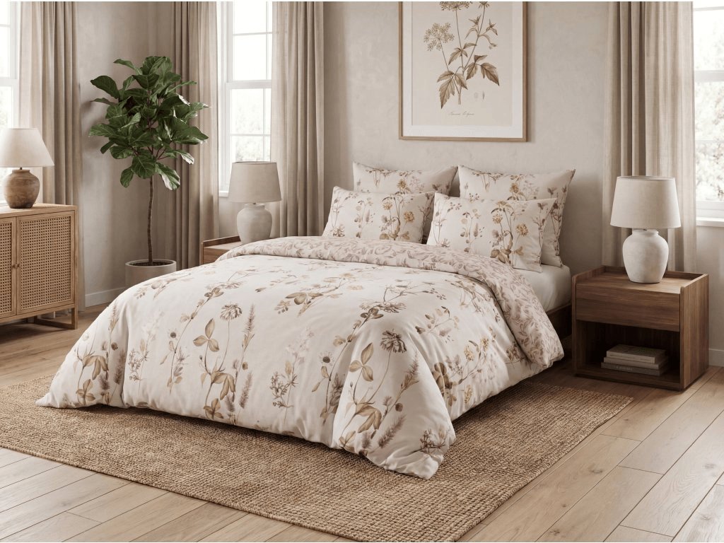 Mikroflanell Bettwäsche aus Mikrofaser BOTANIQUE beige-rosa