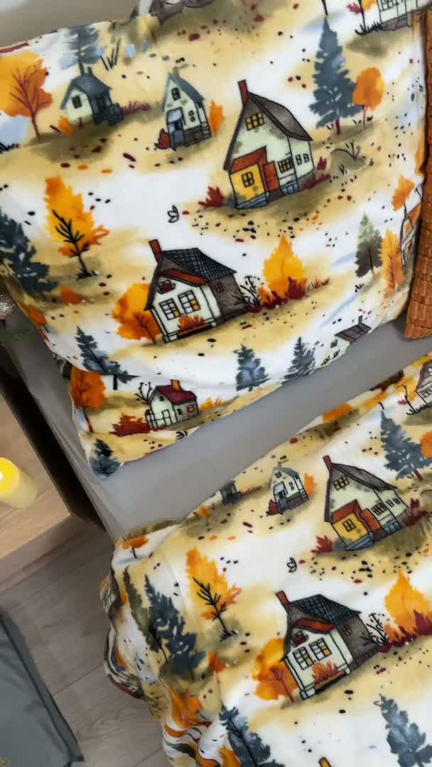 Mikroplüsch-Bettwäsche AUTUMN VILLAGE bunt