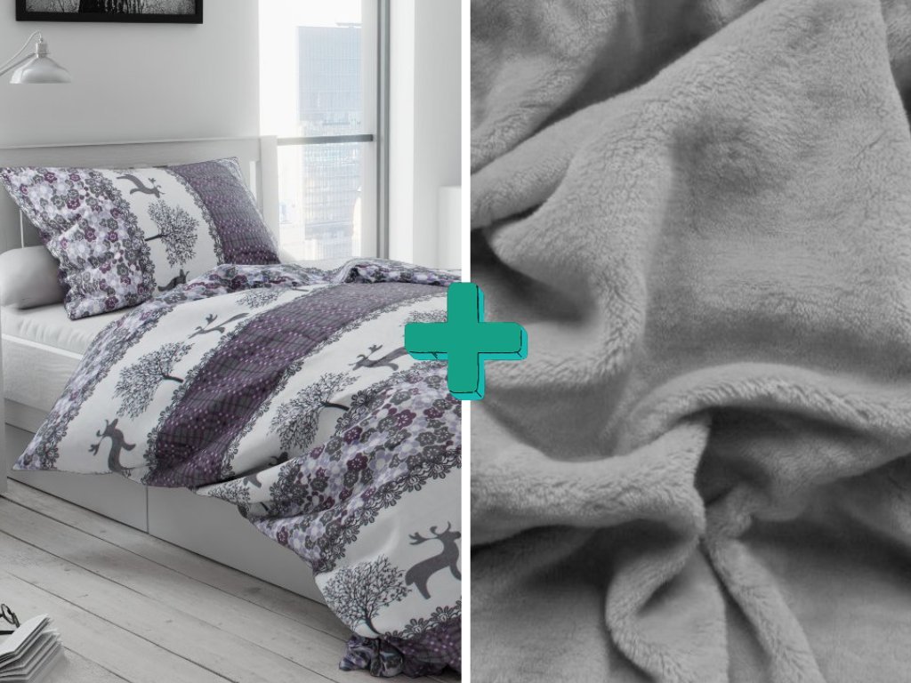Mikroplüsch-Bettwäsche CHRISTMAS SOBI grau + Mikroplüsch-Bettlaken SOFT 90x200 cm hellgrau