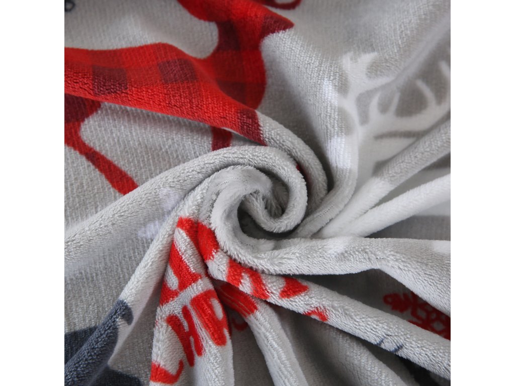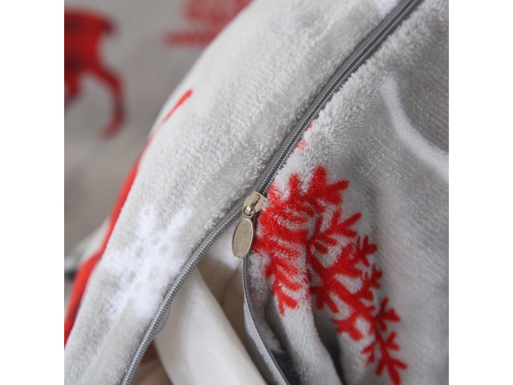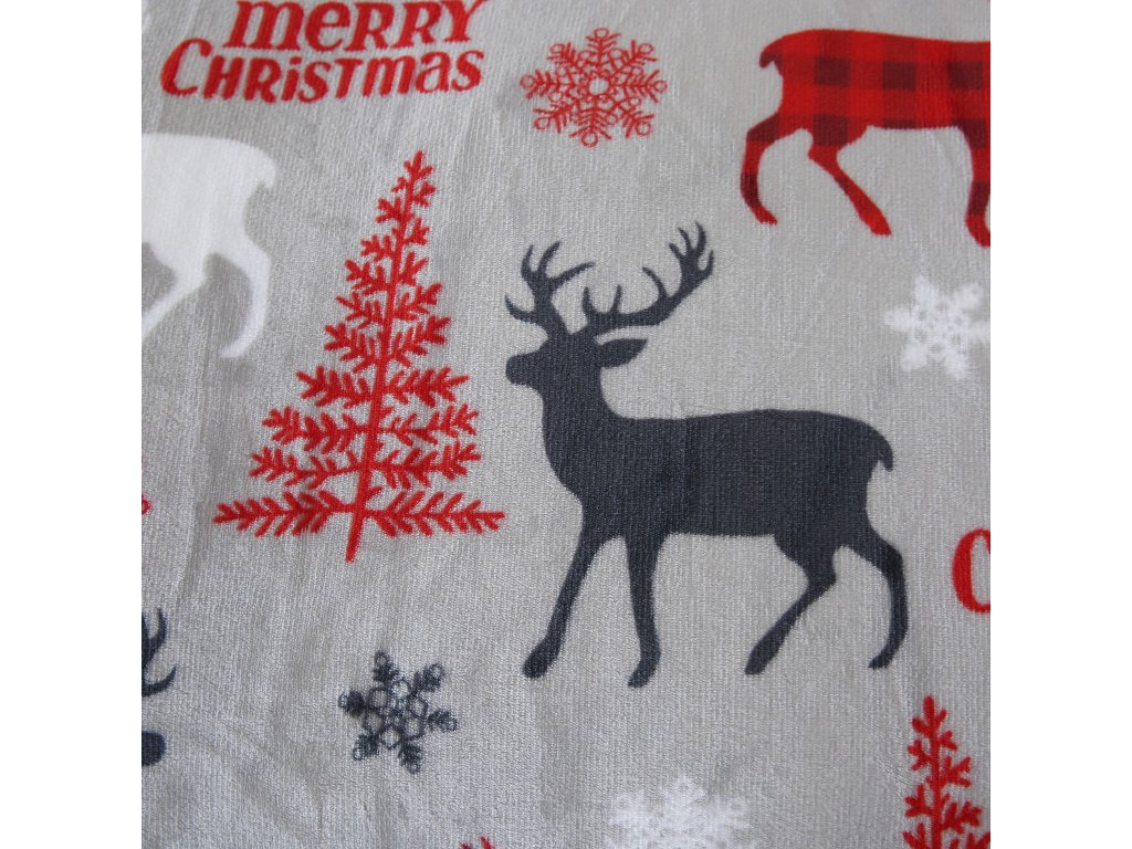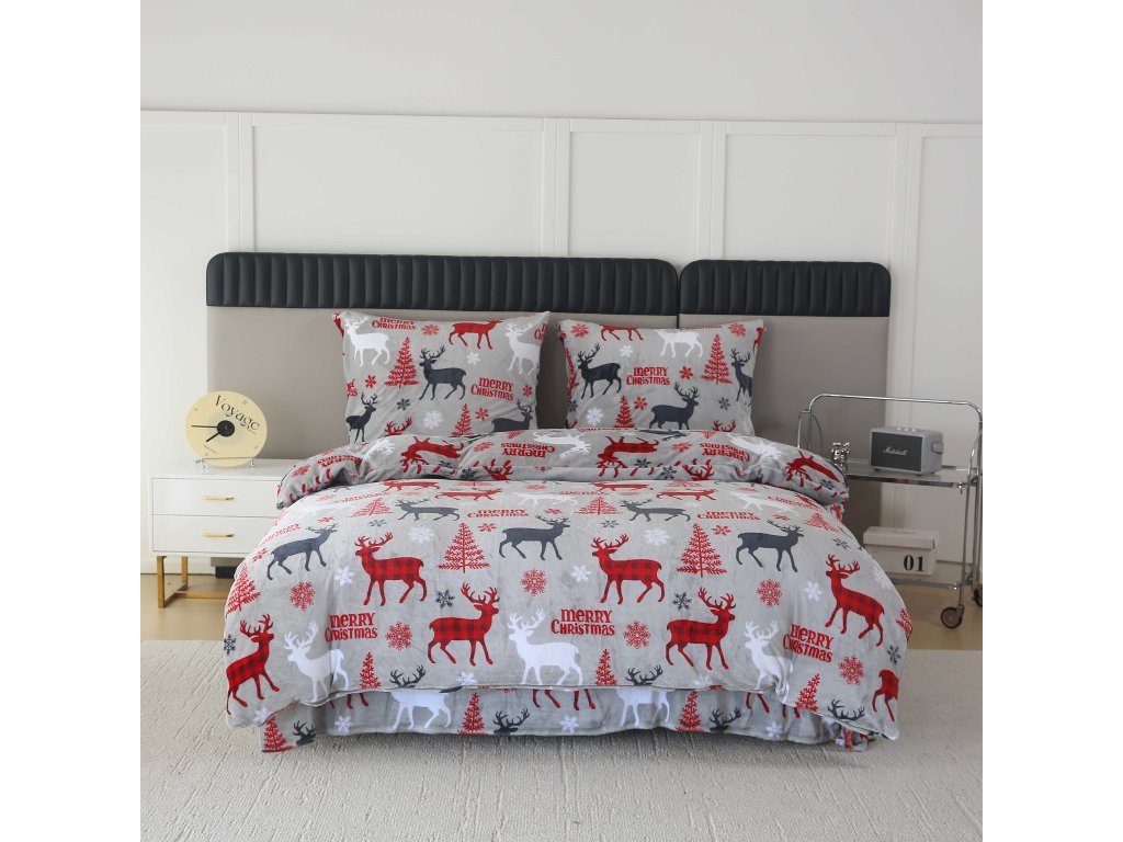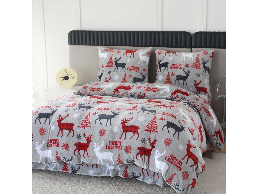 Mikroplüsch-Bettwäsche-Set MERRY CHRISTMAS DEER grau + Mikroplüsch-Spannbettlaken SOFT 180x200 cm weiß, Doppelbett