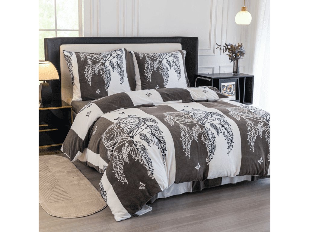 Mikroplüsch-Bettwäsche TIRSO grau-weiß