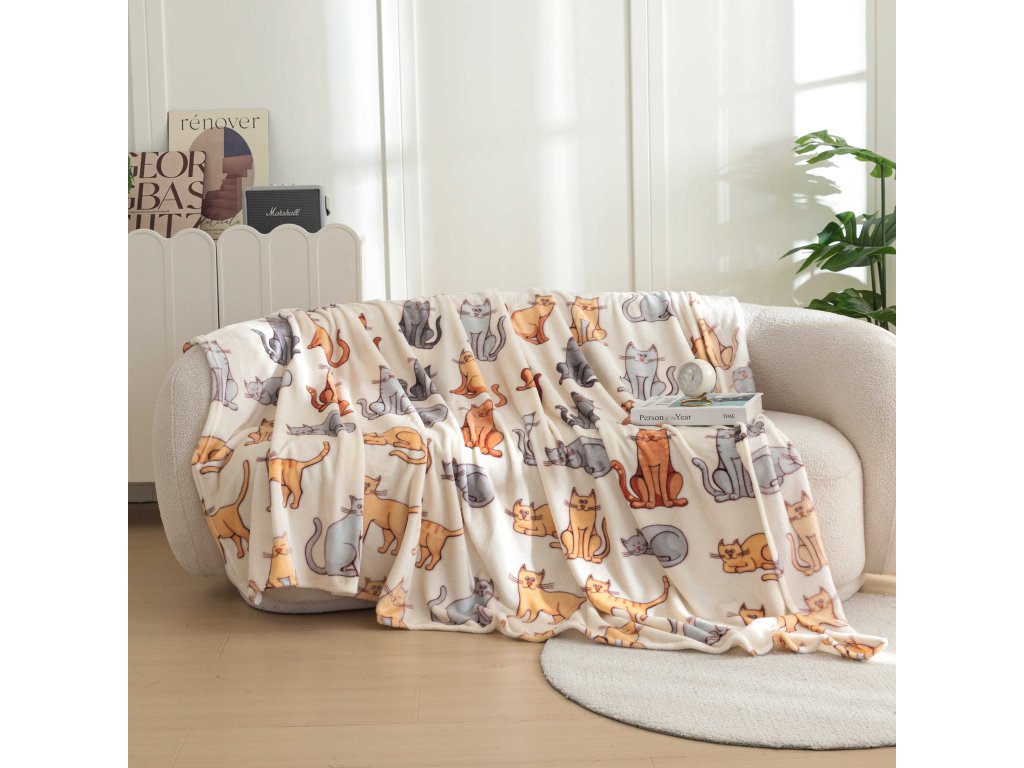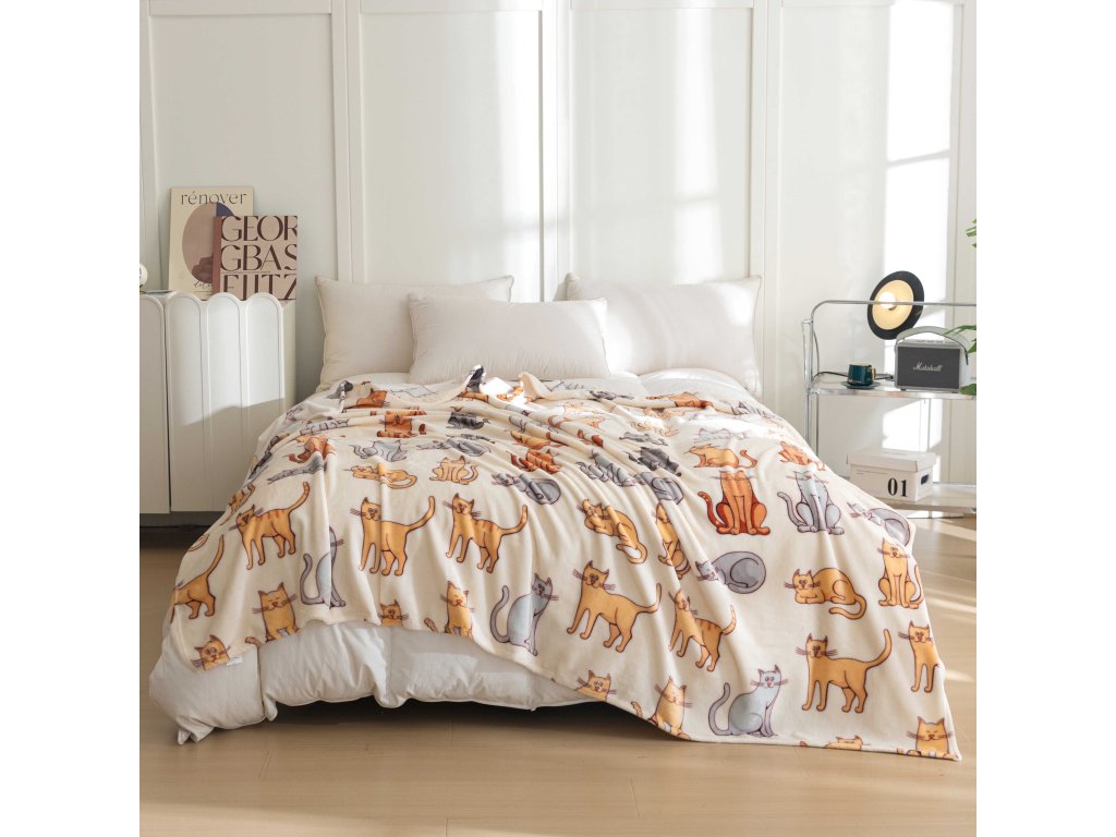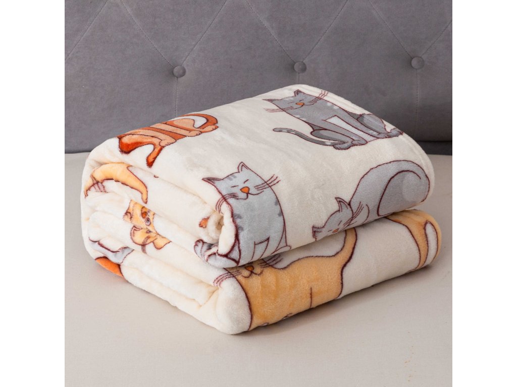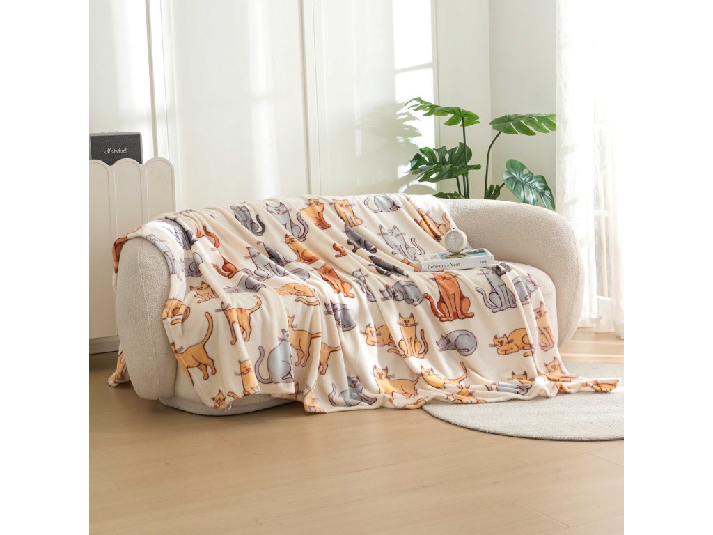 Mikroplüsch-Sherpa-Decke COLORED CATS cremefarben