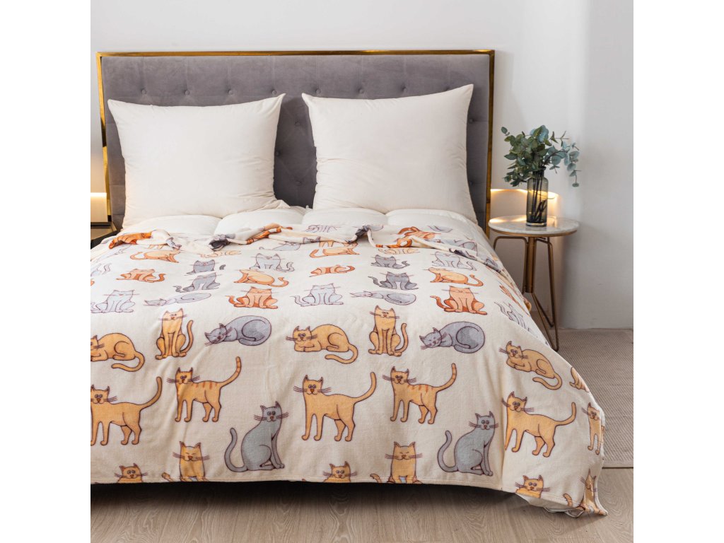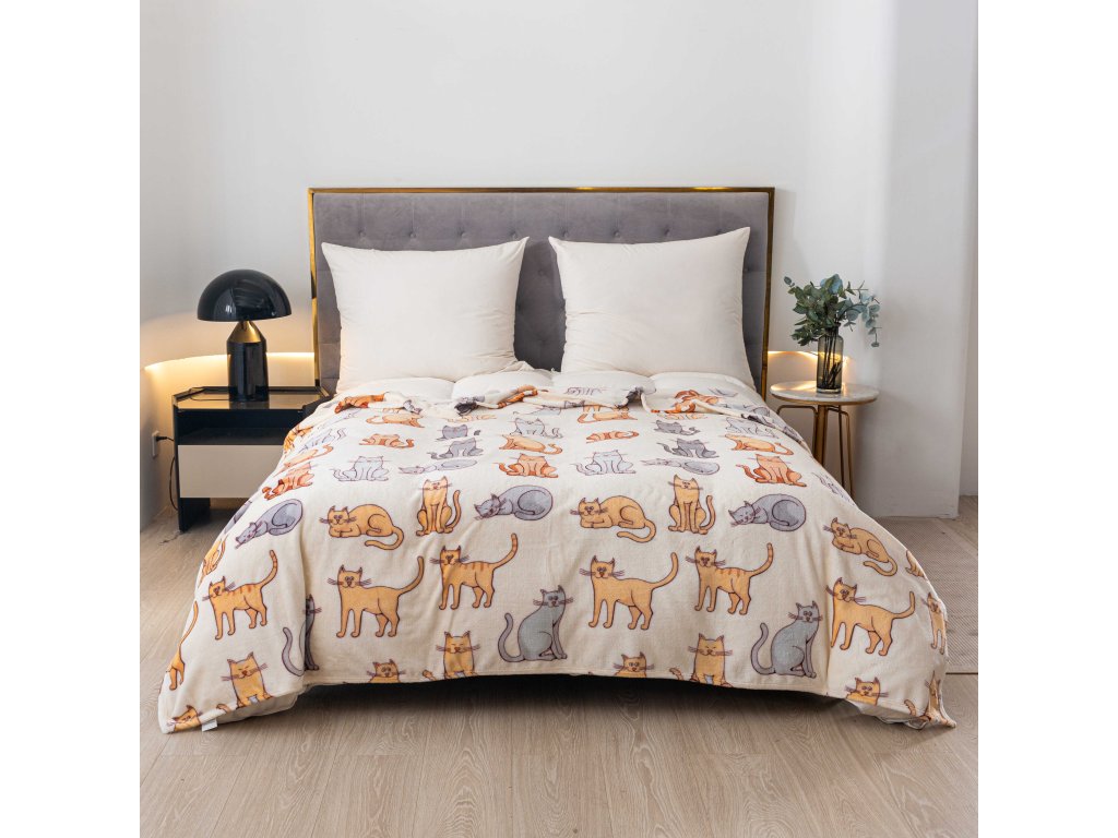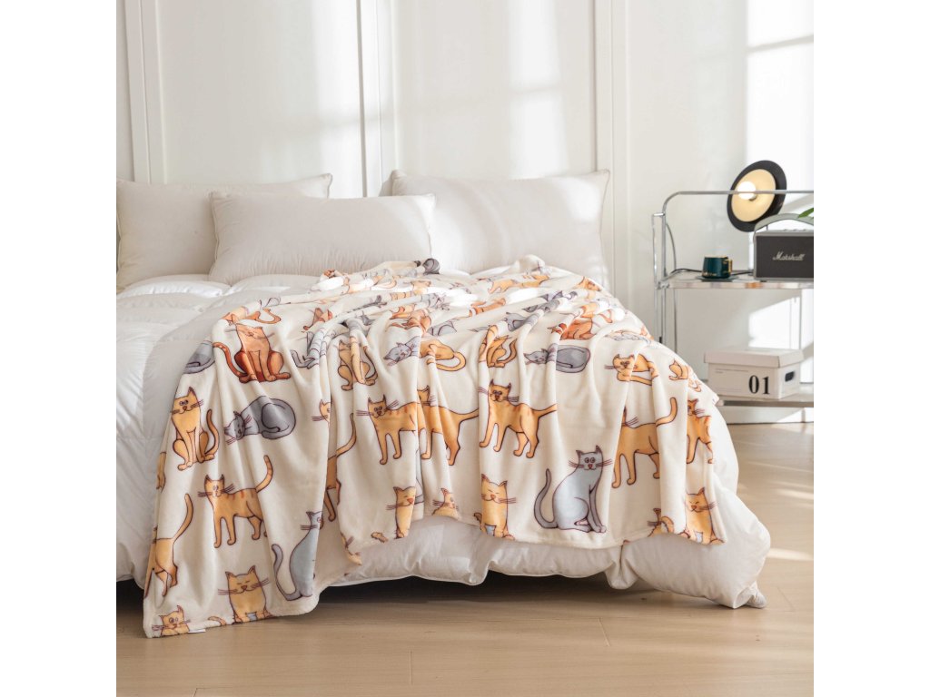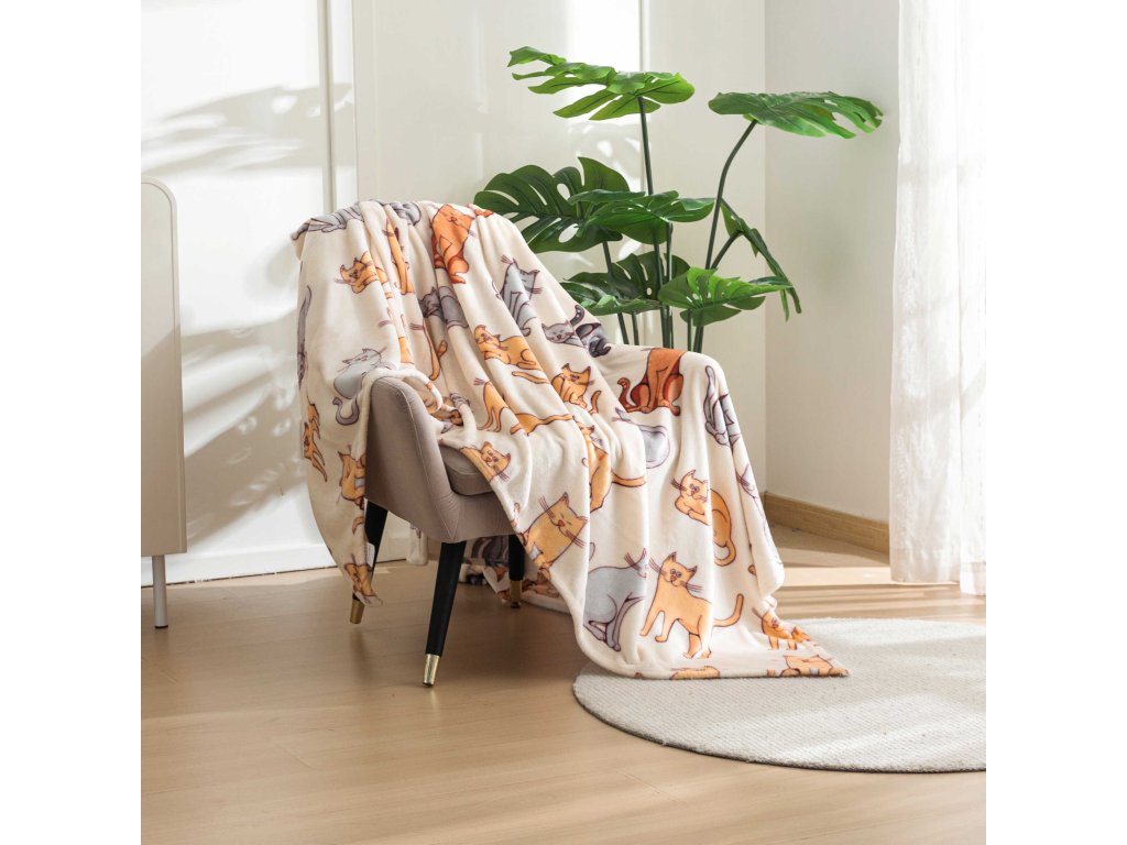 Mikroplüsch-Sherpa-Decke COLORED CATS cremefarben