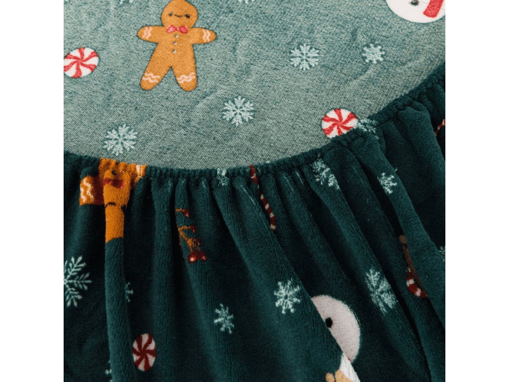 Mikroplüsch-Spannbettlaken SNOWMAN AND GINGERBREAD 160x200 cm grün