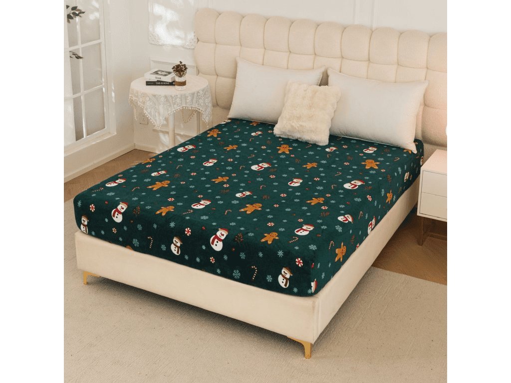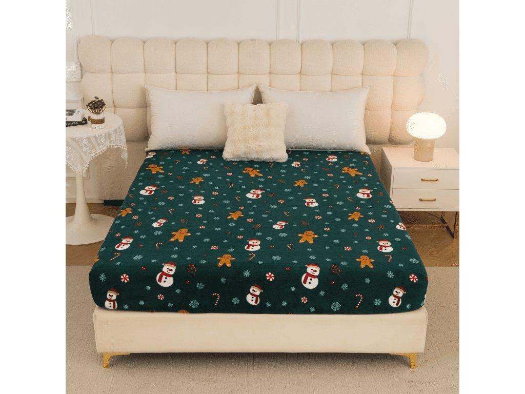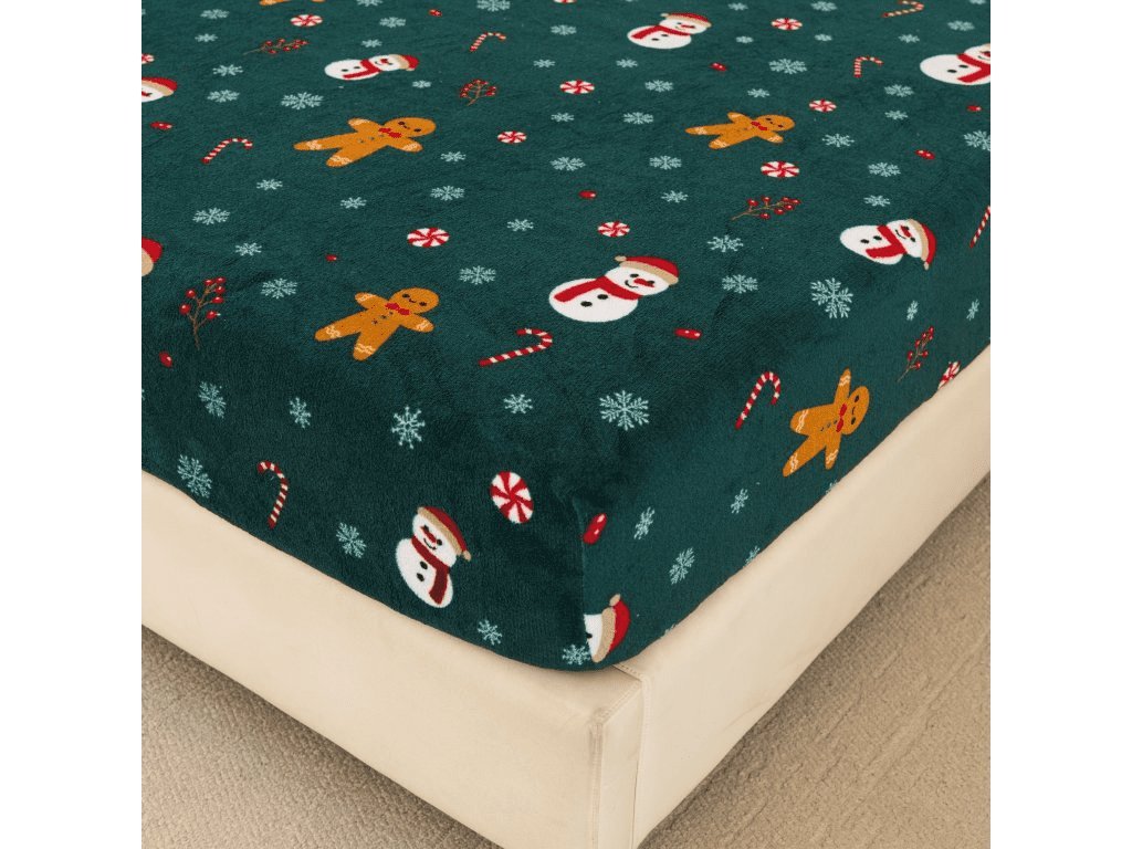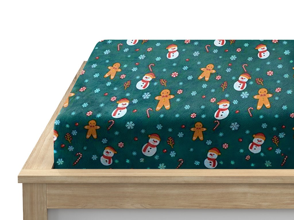 Mikroplüsch-Spannbettlaken SNOWMAN AND GINGERBREAD 200x200 cm grün