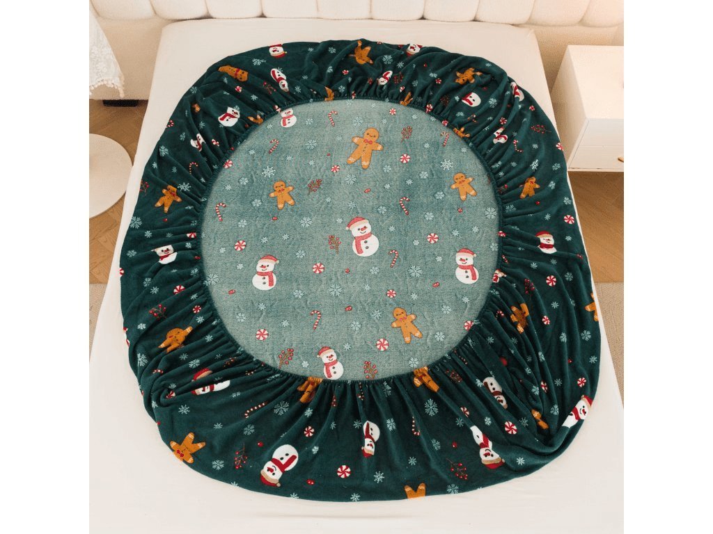 Mikroplüsch-Spannbettlaken SNOWMAN UND GINGERBREAD 90x200 cm grün