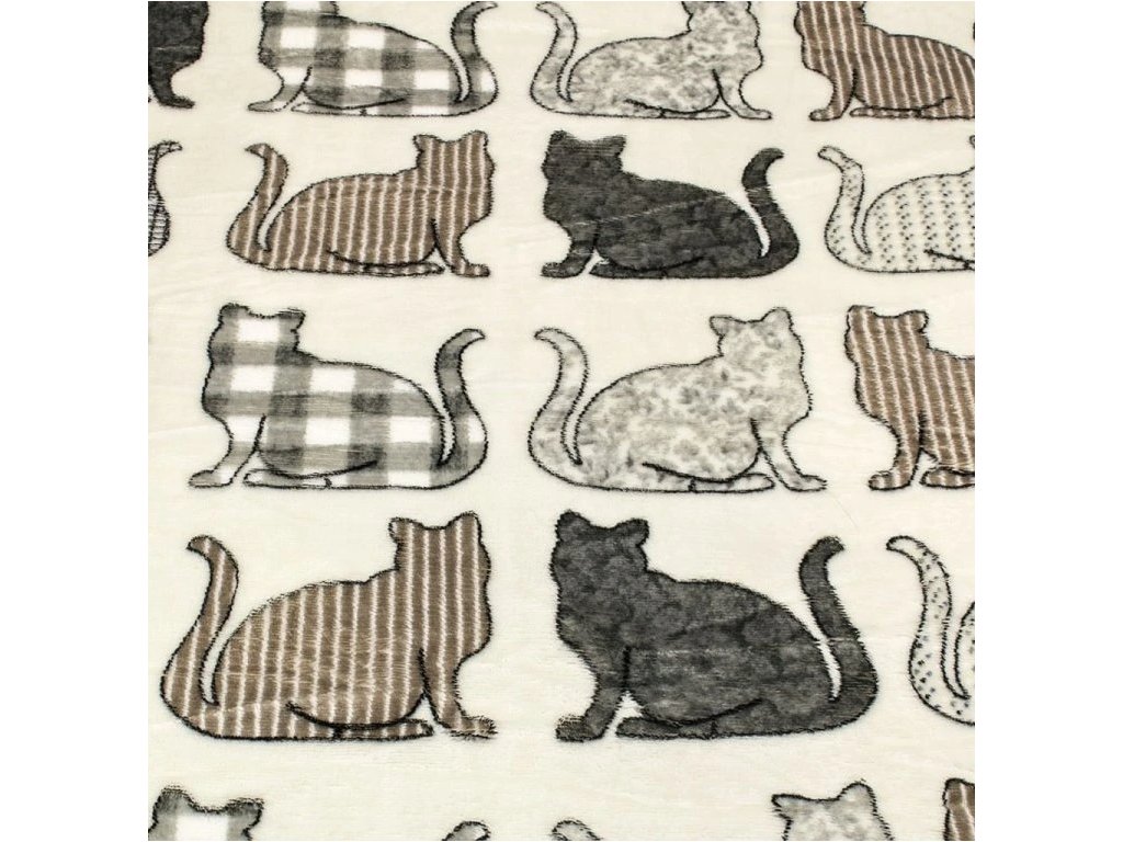 Mikroplüsch-Decke GEMUSTERTE KATZEN 150x200 cm, creme