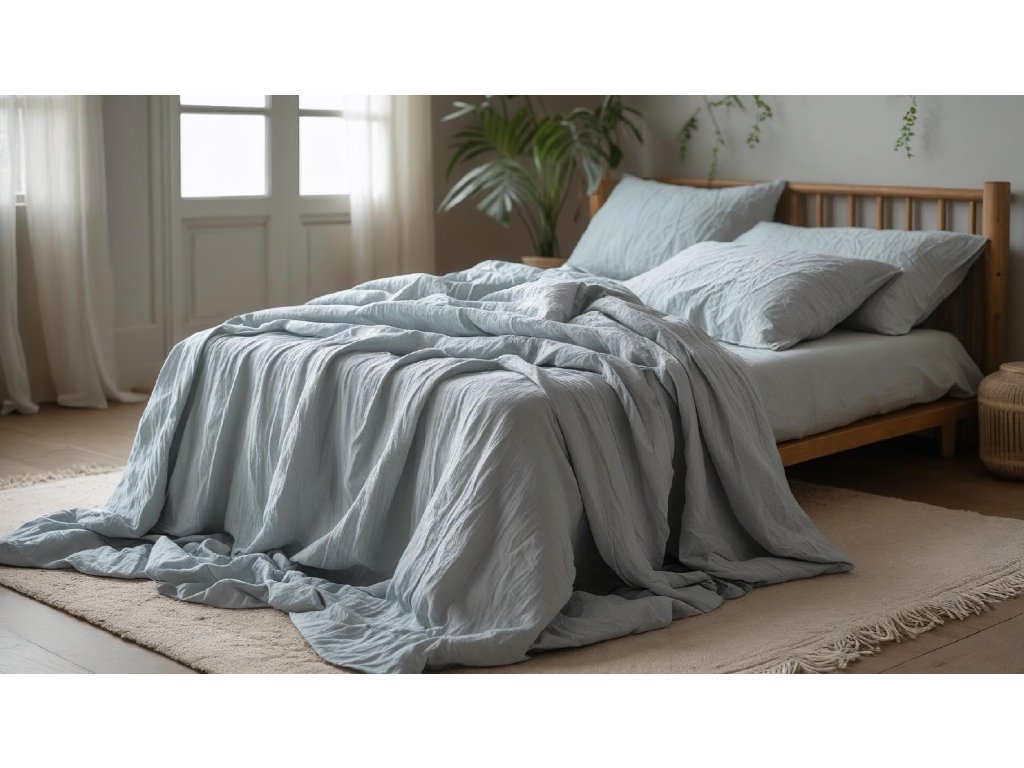 Musselin-Bettwäsche aus 100% Baumwolle ist äußerst leicht, luftig und angenehm im Griff, ideal für die Sommermonate und das ganze Jahr über bequem. Sie besteht aus hochwertigem Naturgarn in offener Faserbindung, was für hohe Atmungsaktivität und schnelles Trocknen sorgt. Aufgrund ihrer Sanftheit ist sie auch für empfindliche Haut geeignet. Sie muss nicht gebügelt werden und wird mit jedem Waschen weicher. Der natürlich gekräuselte Look passt hervorragend zu skandinavischen, Boho- und natürlichen Einrichtungsstilen.