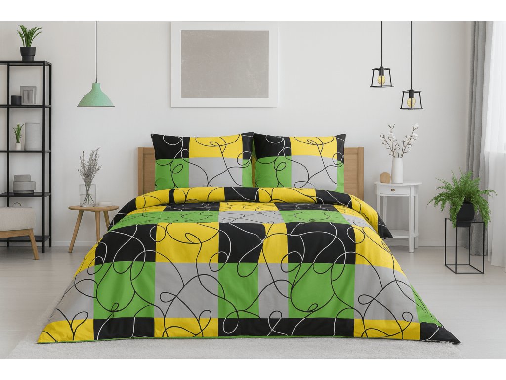 Polycotton-Bettwäsche CHESS LIME, bunt