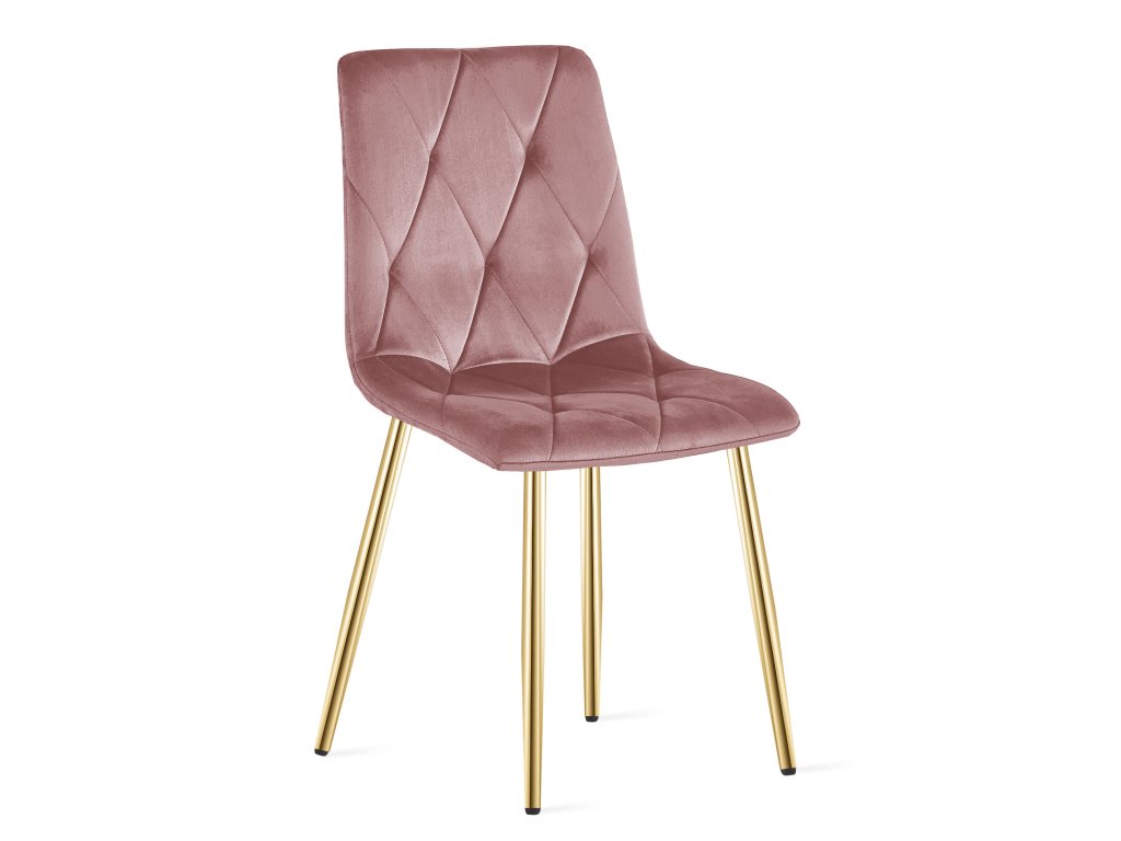 Rosa Samt-Esszimmerstuhl LIBRA mit goldenen Beinen