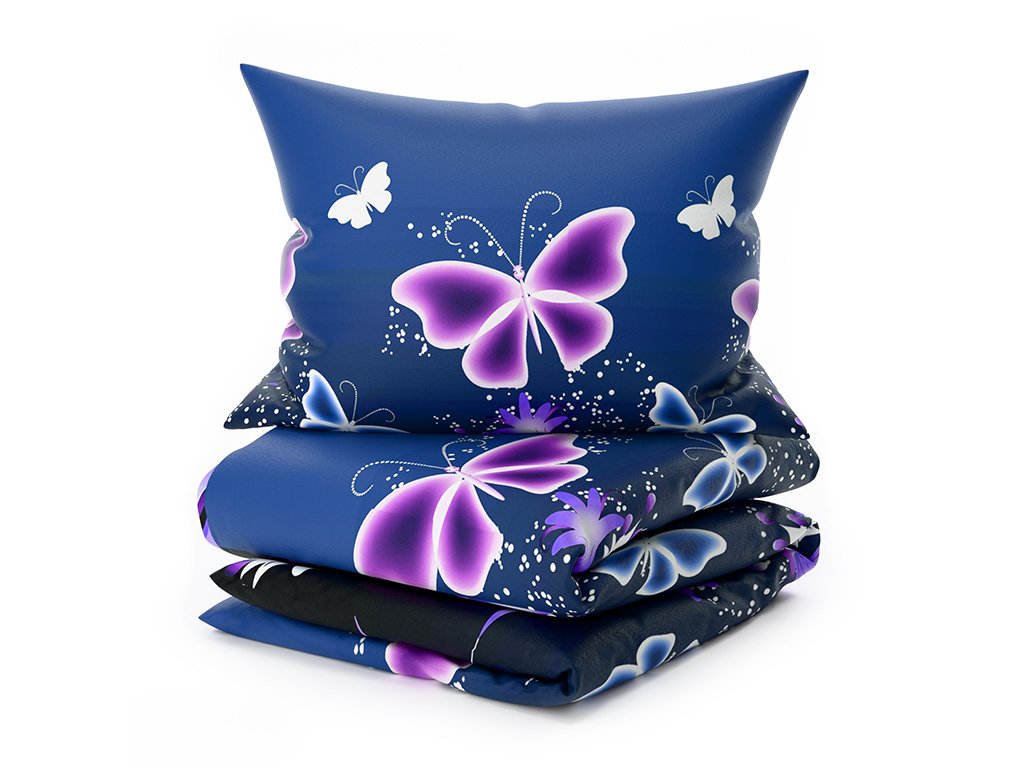 Sada 2ks mikroplyšového povlečení VIOLET BUTTERFLY tmavě modré + prostěradlo mikroplyš SOFT 180x200 cm bílé, dvoulůžko