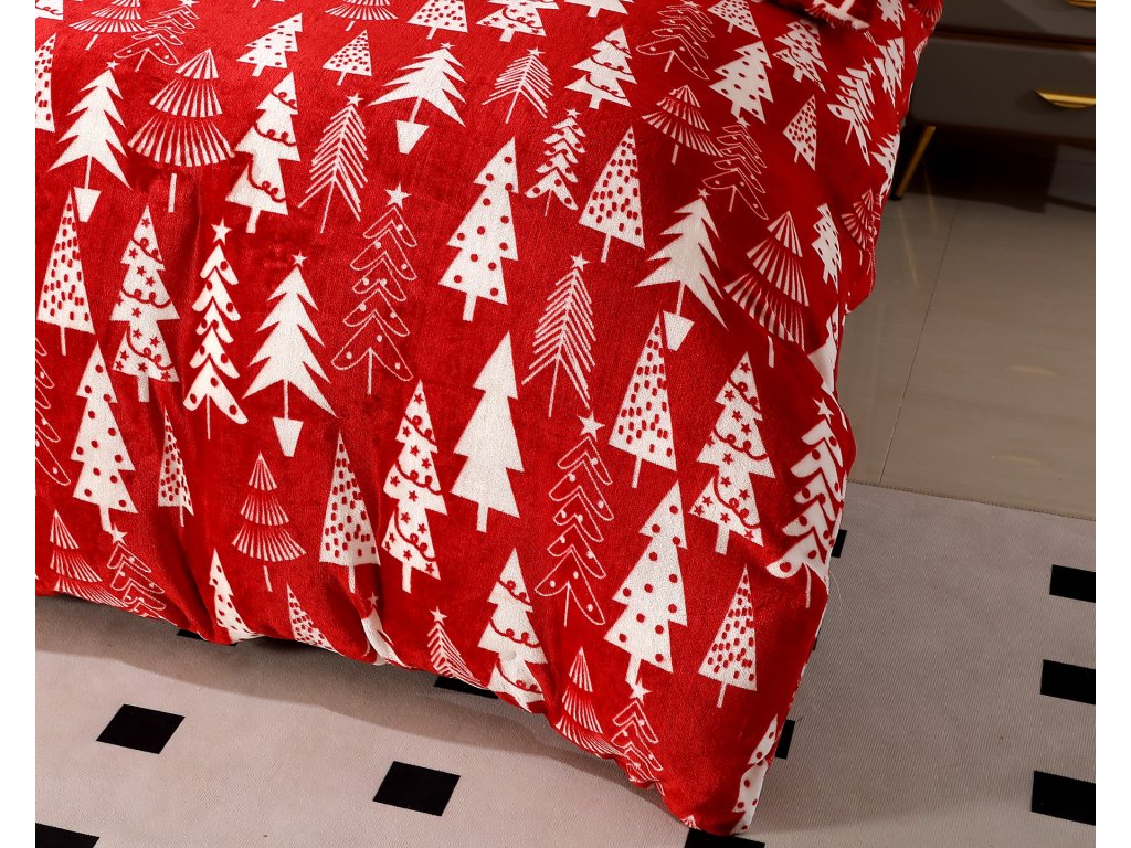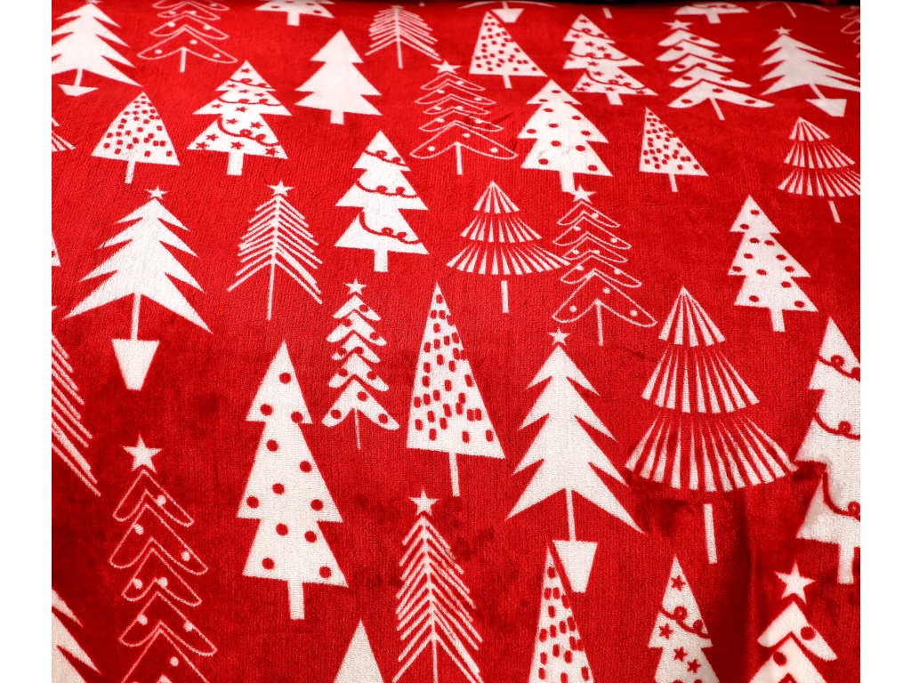 Sada mikroplyšového povlečení CHRISTMAS TREES červené + prostěradlo mikroplyš SOFT 180x200 cm bílé, dvoulůžko