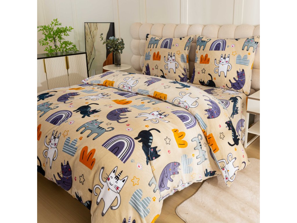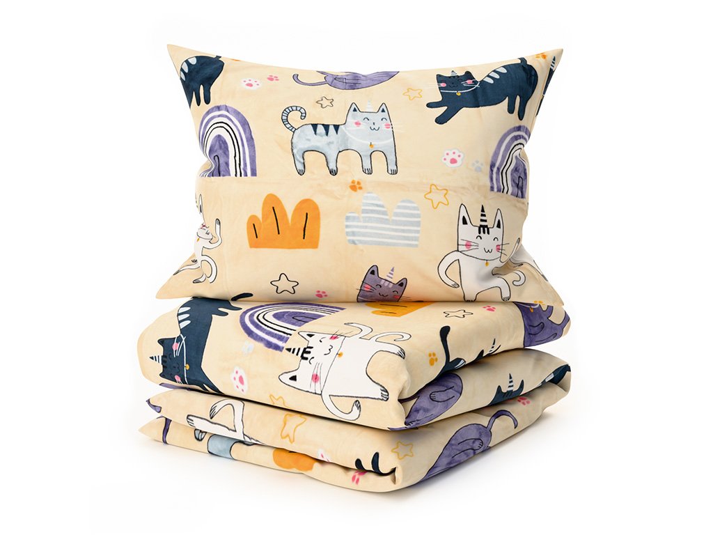 Sada mikroplyšového povlečení PURRSLEEP béžové + prostěradlo mikroplyš SOFT 90x200 cm bílé, jednolůžko