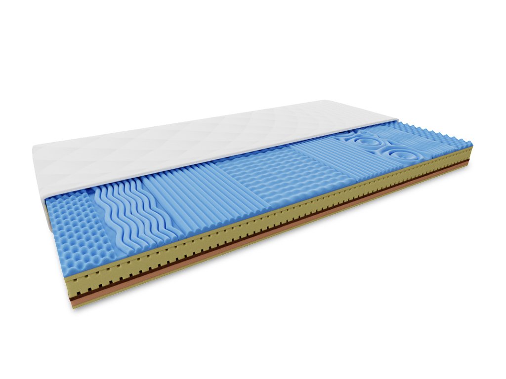 - Kombination von PUR-Schäumen T25 und T30 bildet den mittleren tragenden Teil der Matratze