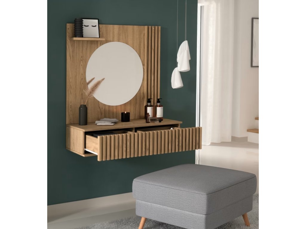 Schminktisch mit Spiegel und Schublade ENTSIAN 85x40cm, Eiche Artisan