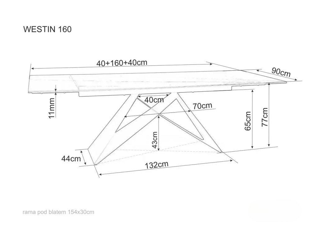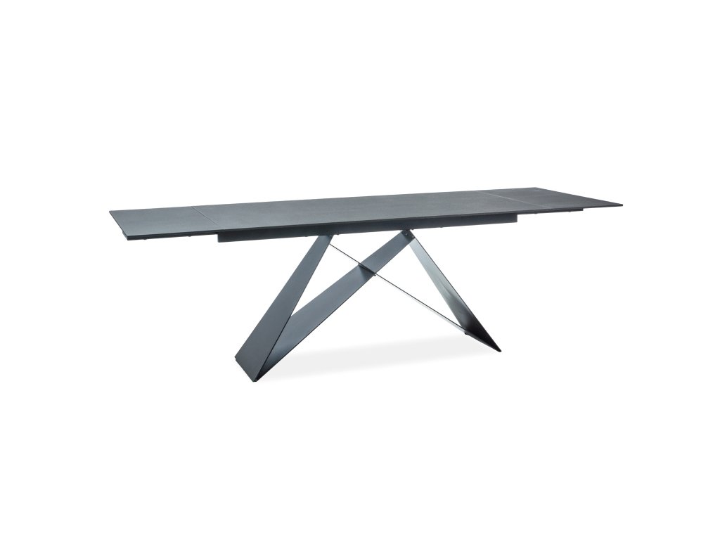 Esstisch WESTIN I beeindruckt durch sein modernes Aussehen und präzise Verarbeitung. Die robuste schwarze Konstruktion und die originell geformte Basis verleihen dem Tisch einen einzigartigen Charakter. Dank der ausziehbaren Funktion bietet er eine variable Länge von 160 bis zu 240 cm, was ihn zur idealen Wahl für das tägliche Essen und größere Familientreffen macht.