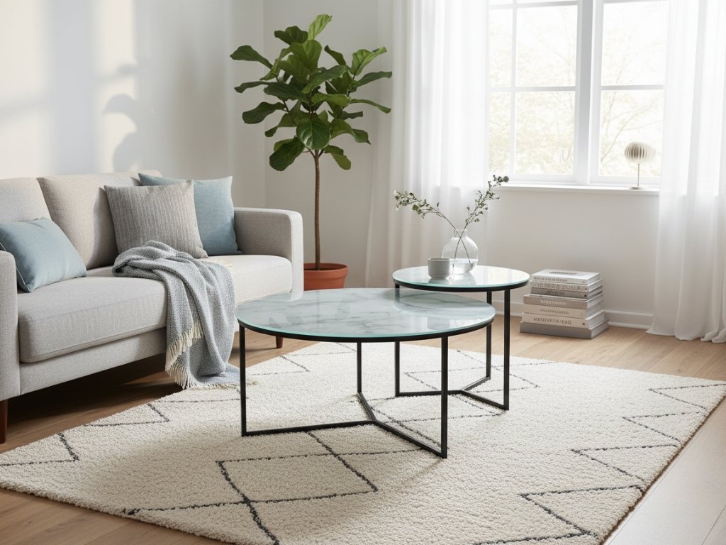 Set aus 2 Couchtischen in Marmor-Optik PALERMO II grau