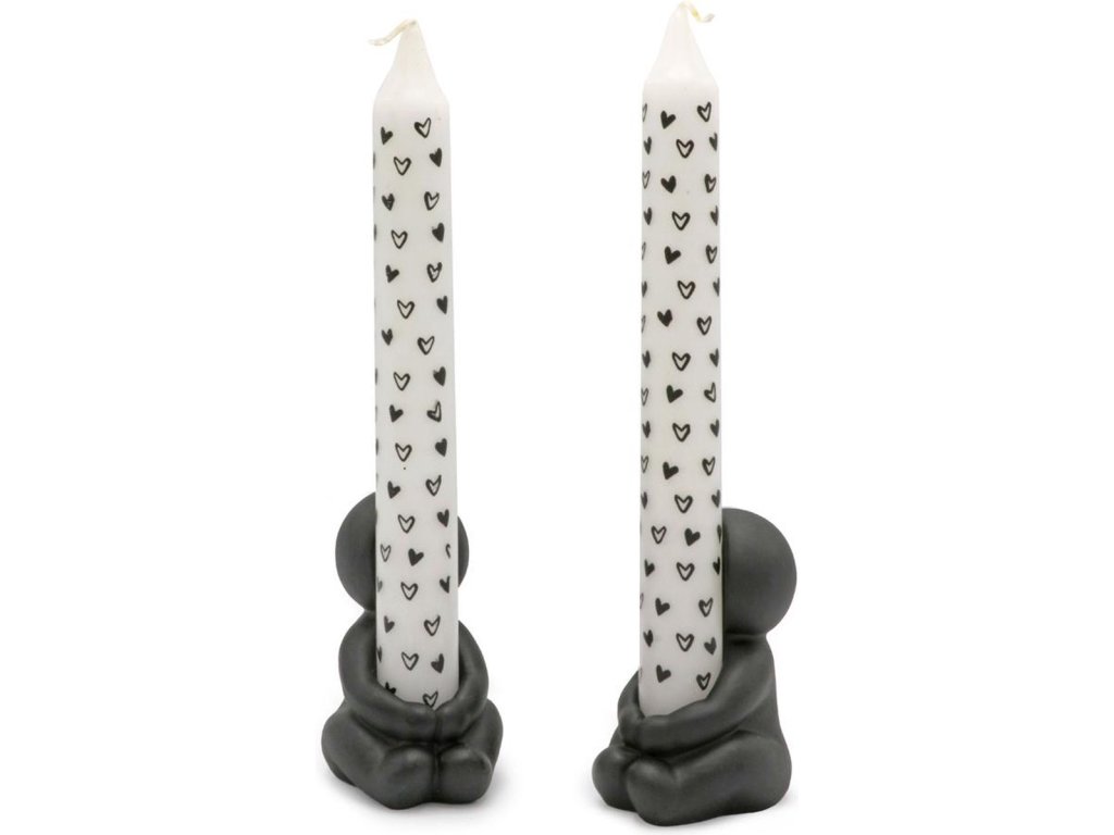 Set aus 2 Kerzenhaltern aus Steinzeug IDEAS 4 SEASONS, schwarz