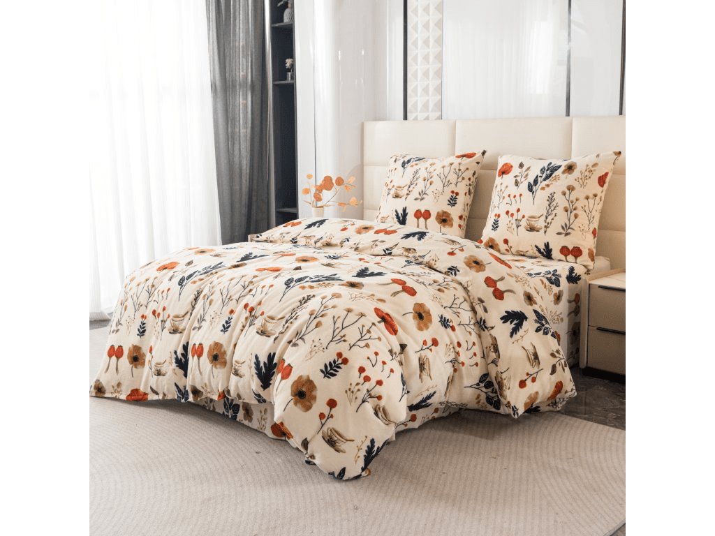 Set aus 2 Stk. Mikroplüsch-Bettwäsche PAPAVA creme + Mikroplüsch-Spannbettlaken SOFT 180x200 cm weiß, Doppelbett