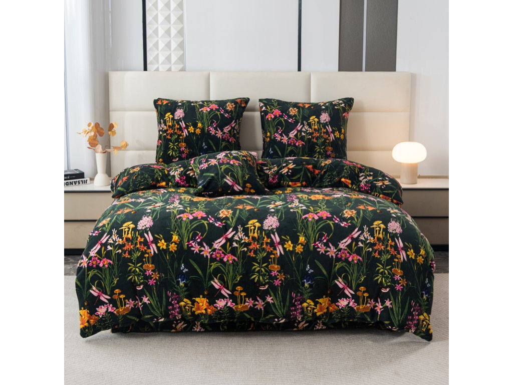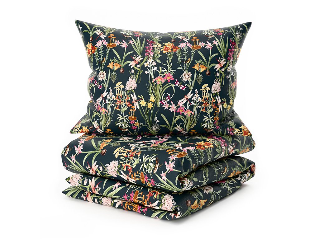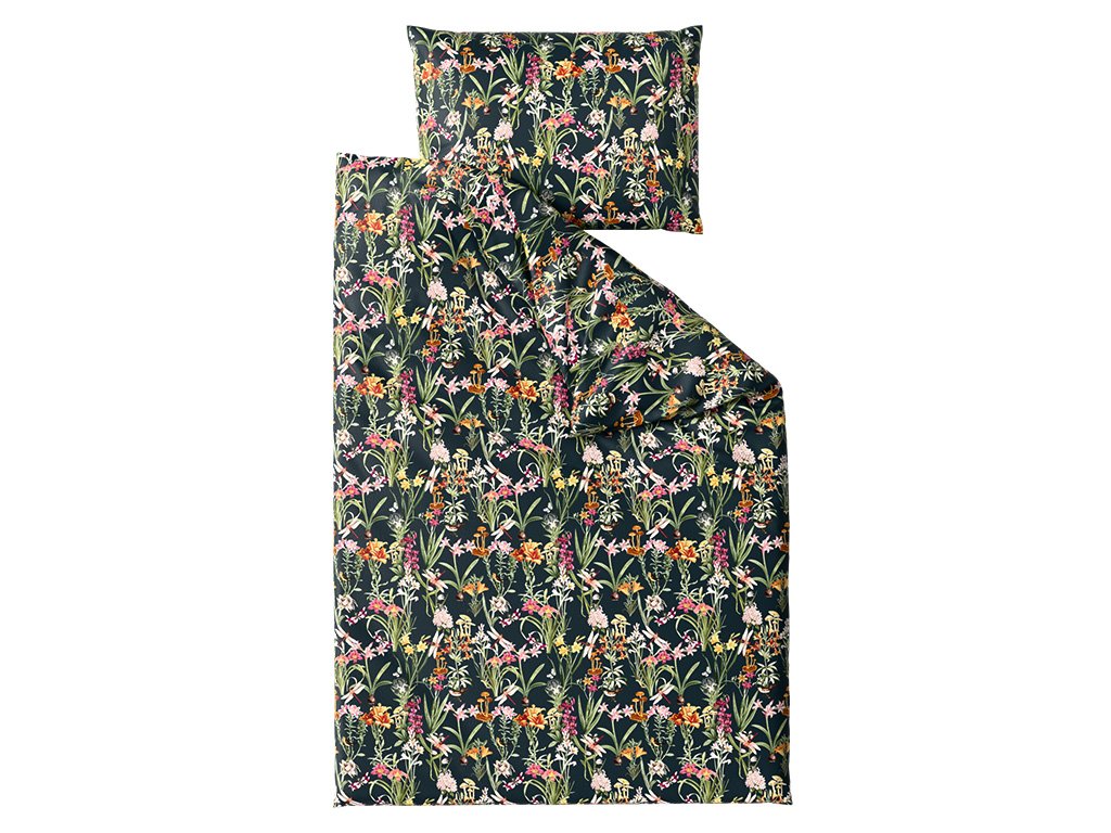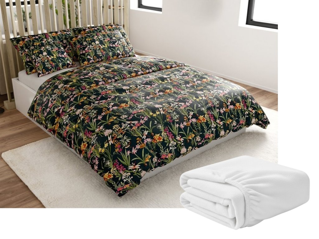 Set aus Mikroplüsch-Bettwäsche MYSTIC GARDEN dunkelgrün + Mikroplüsch-Spannbettlaken SOFT 90x200 cm weiß, Einzelbett