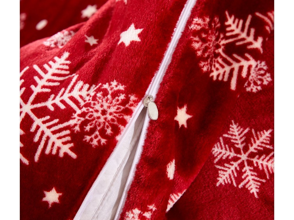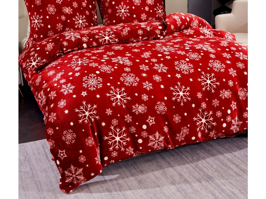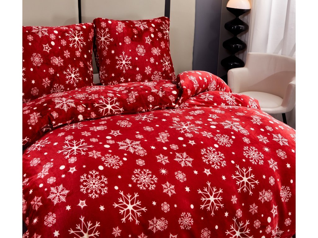 Set aus Mikroplüsch-Bettwäsche SNOWFALL rot + Mikroplüsch-Spannbettlaken SOFT 90x200 cm weiß, Einzelbett