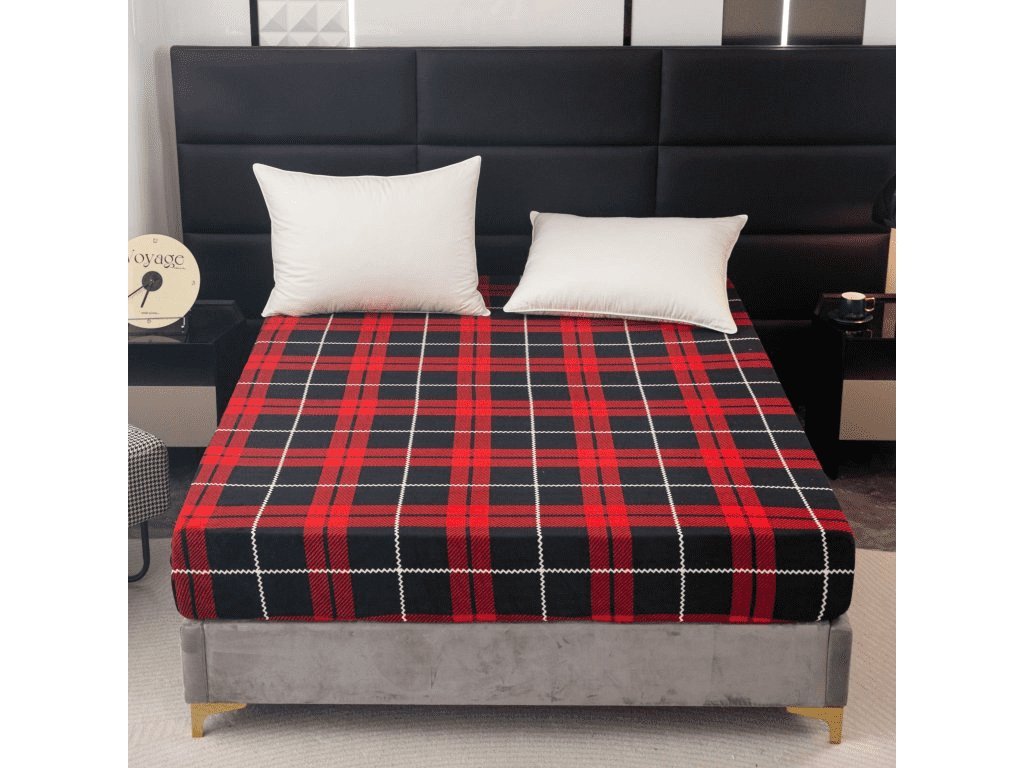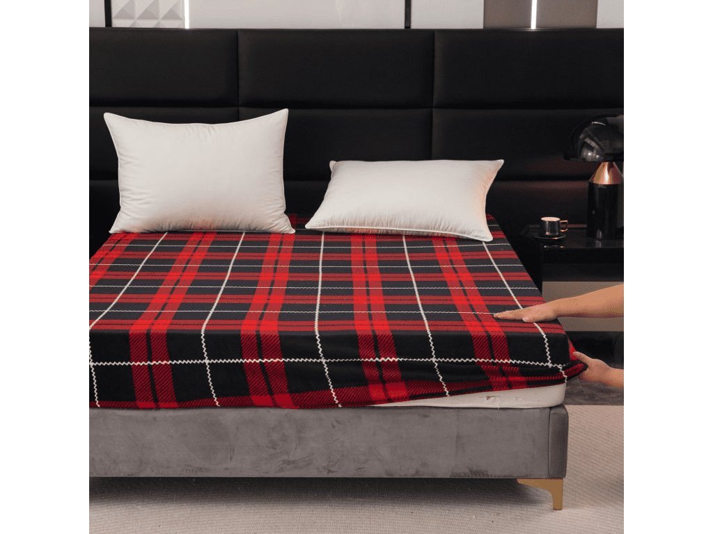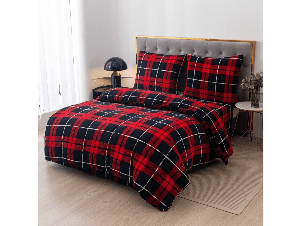 Set aus Mikroplüsch-Bettwäsche + Spannbettlaken 90x200 cm ALBURY rot, Einzelbett