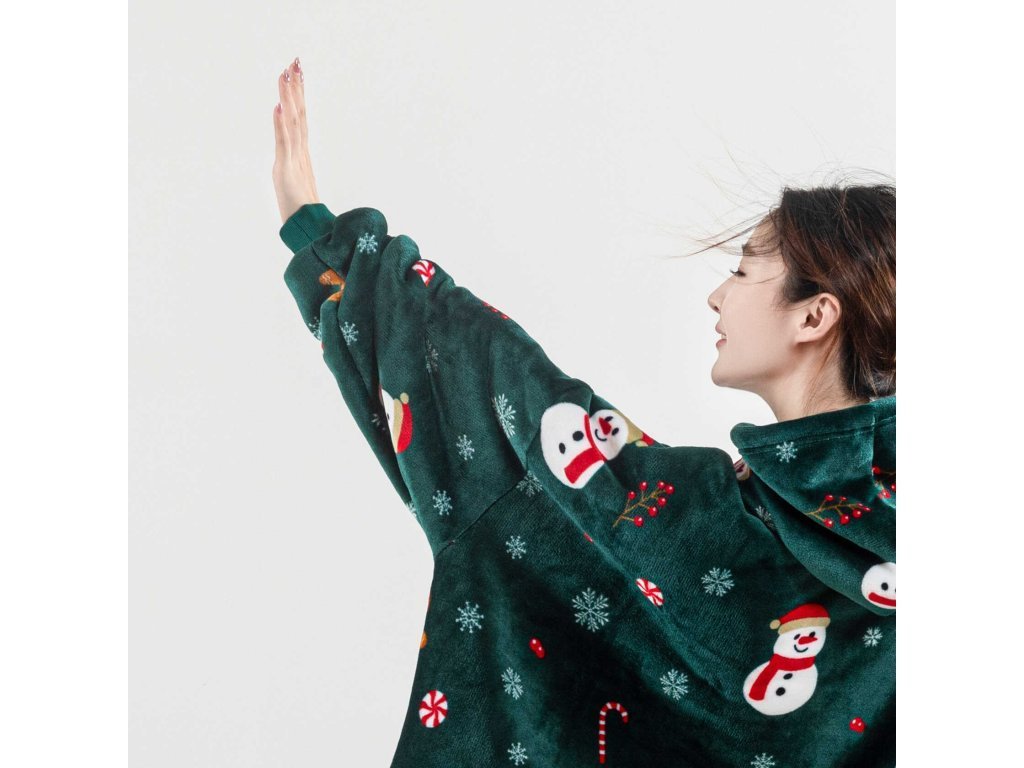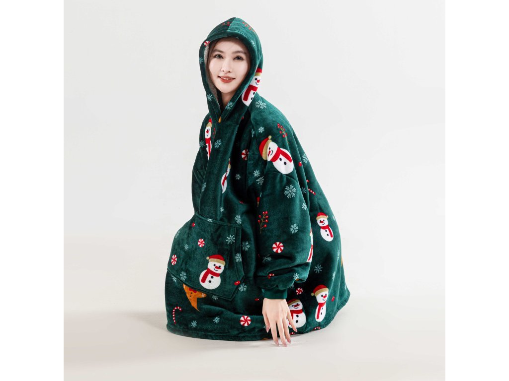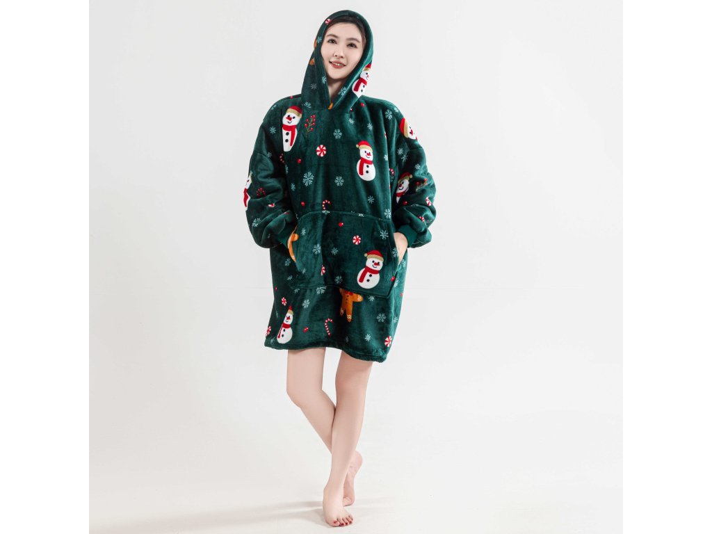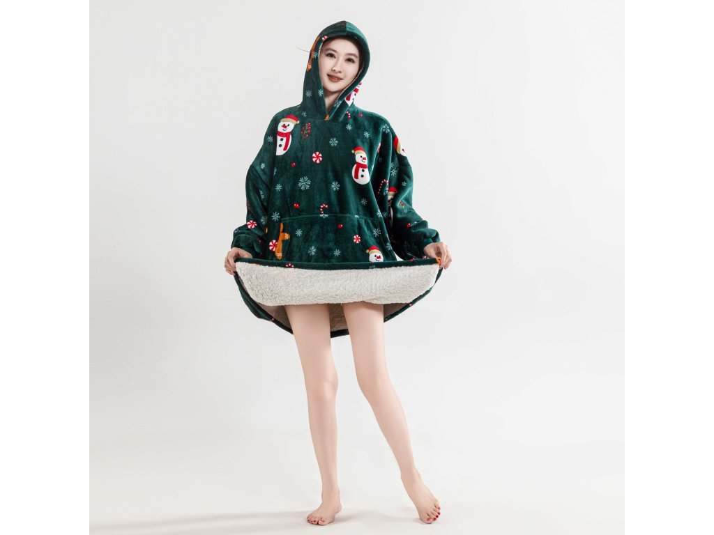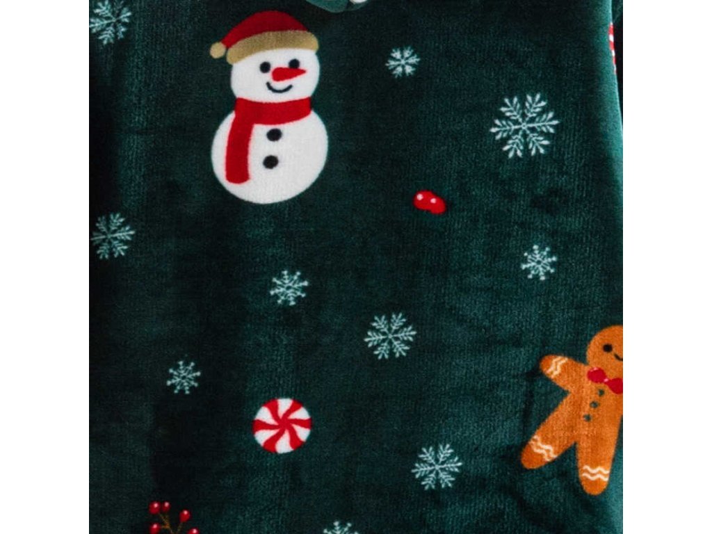 Sherpa-Kapuzen-Plaid mit Ärmeln SNOWMAN AND GINGERBREAD, grün
