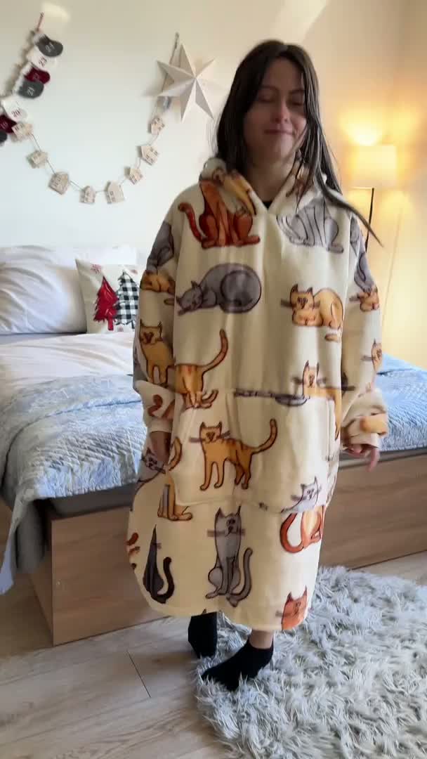 Lammfellimitat-Decke mit Ärmeln und Kapuze COLORED CATS cremefarben