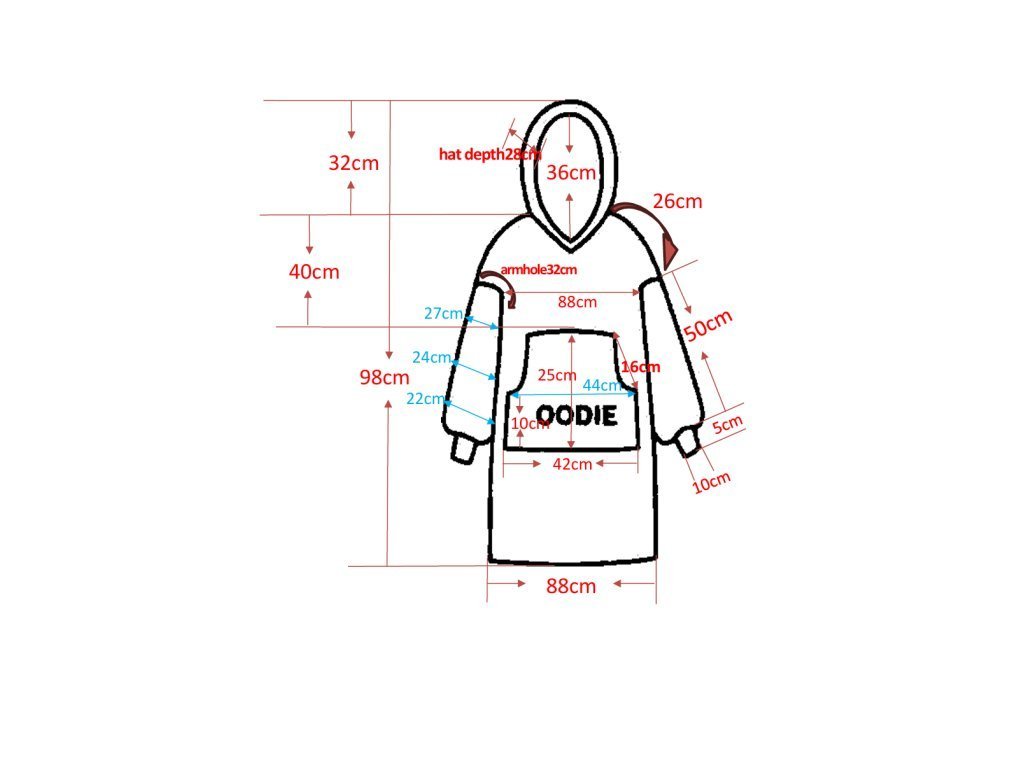 - Länge mit Kapuze: 98 cm