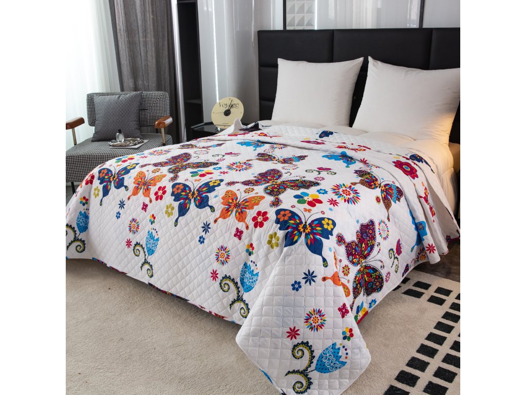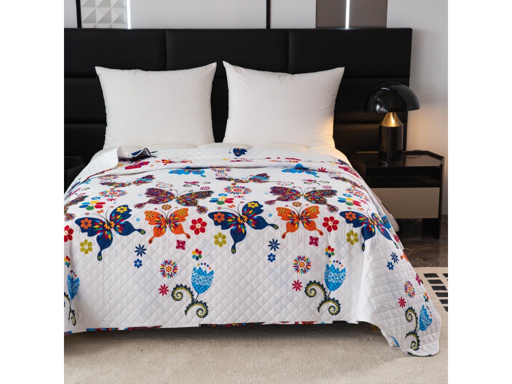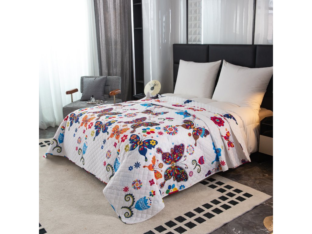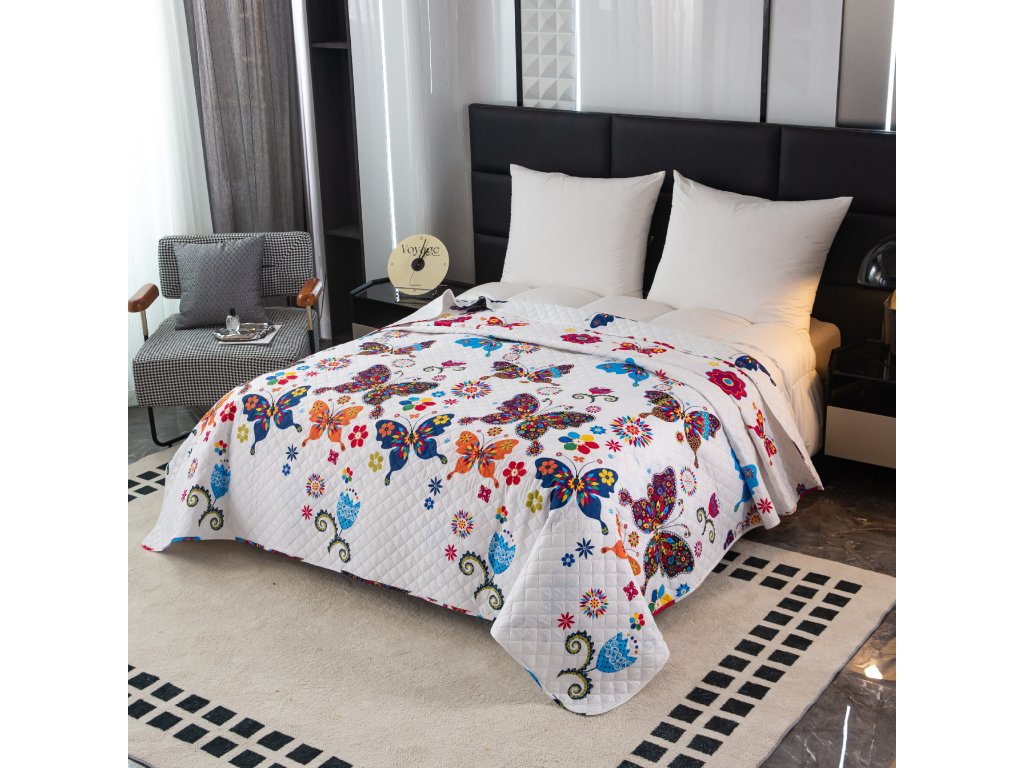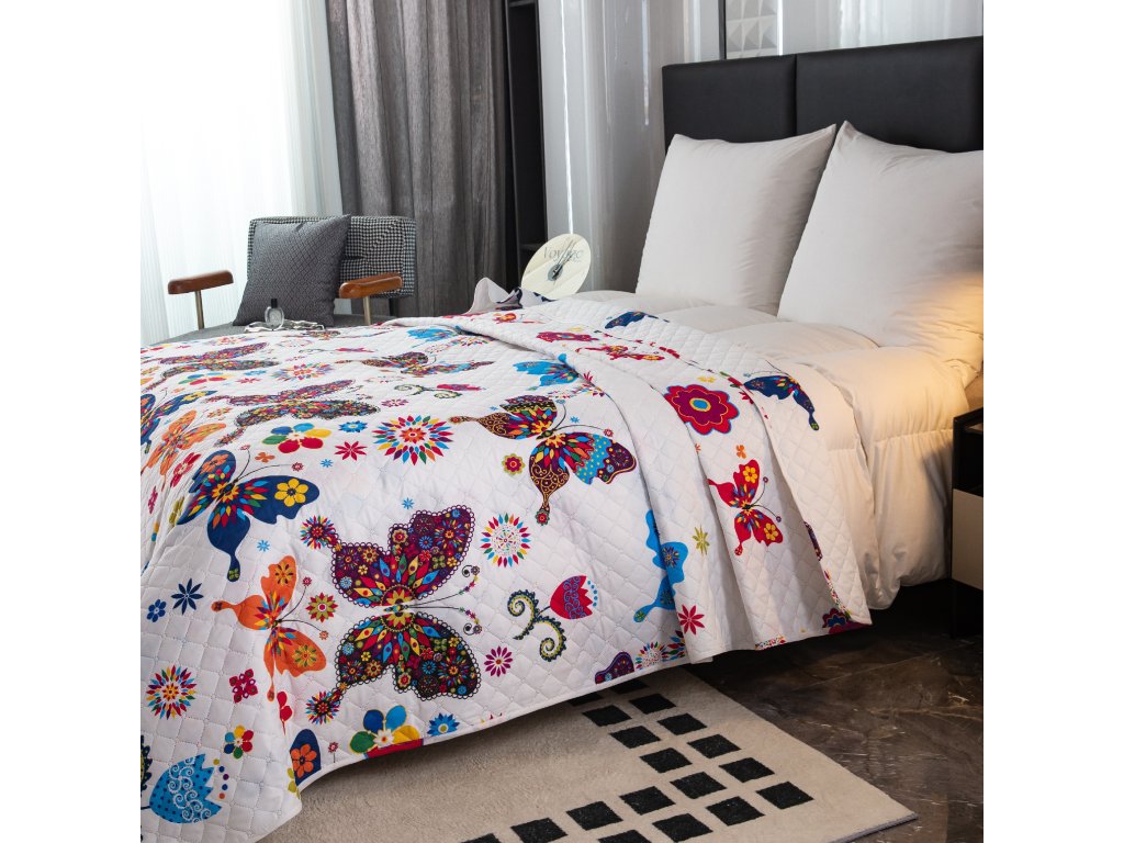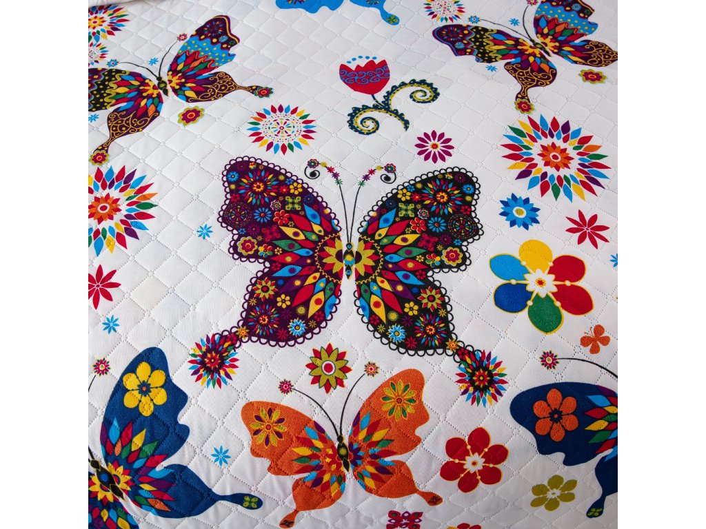 Tagesdecke FARBIGER SCHMETTERLING, weiß