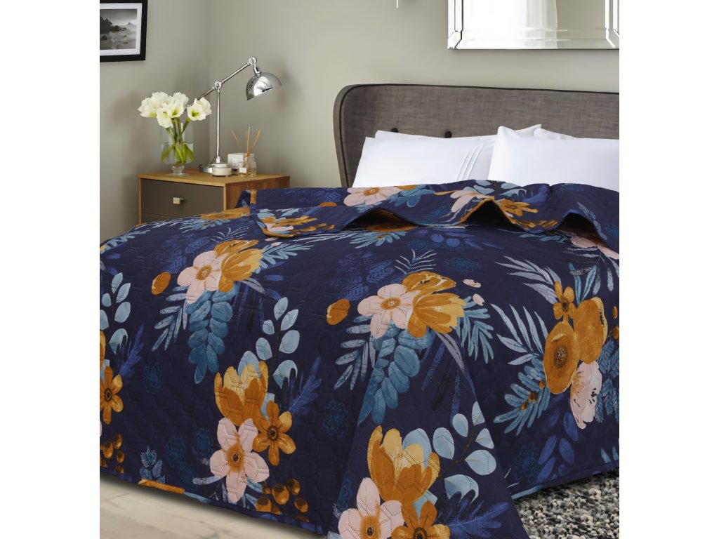 Tagesdecke mit Muster FLOWERISH HEXAGON, dunkelblau