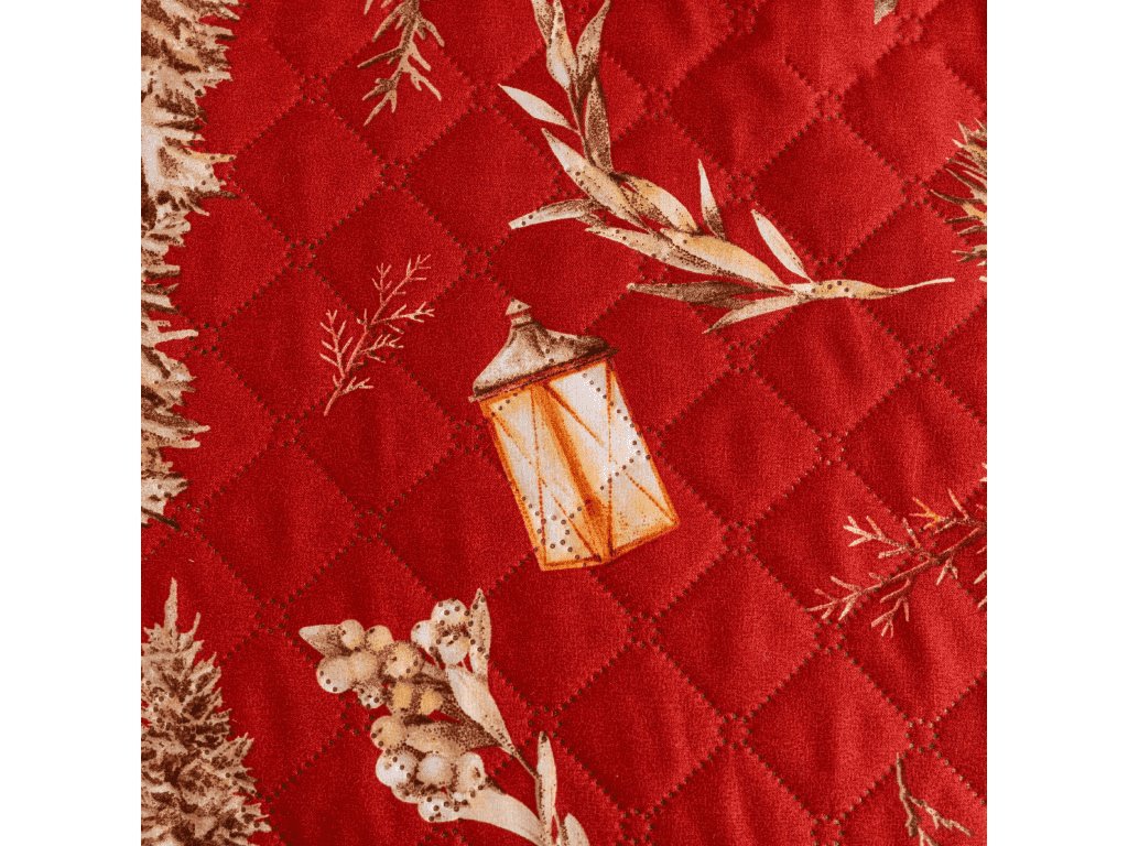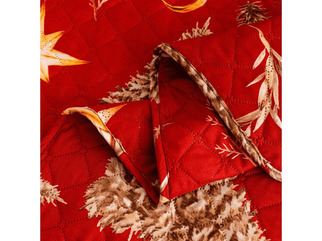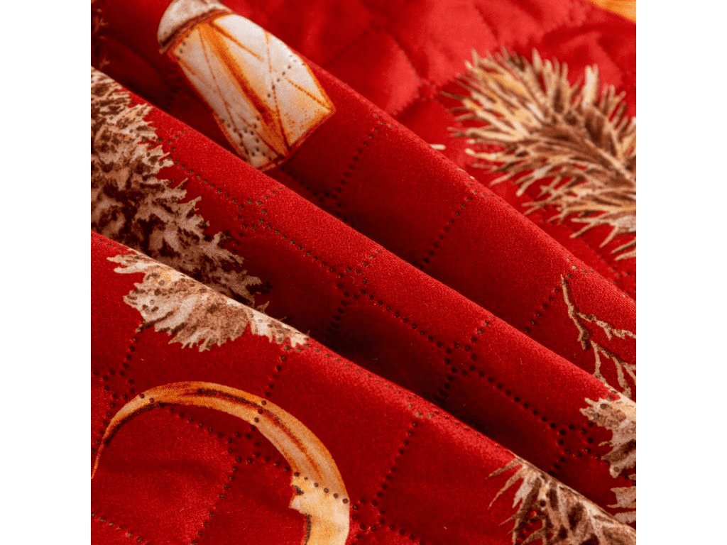 Die Tagesdecke GOLD CHRISTMAS in Rot verleiht Ihrem Schlafzimmer eine festliche Atmosphäre. Auf dem tiefroten Hintergrund heben sich Weihnachtsbaum-, Goldstern- und Geschenk-Motive hervor, die dem Interieur eine warme und feierliche Note verleihen.