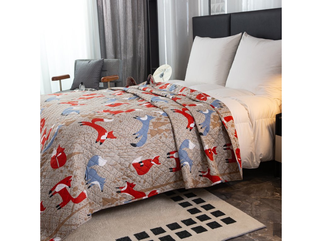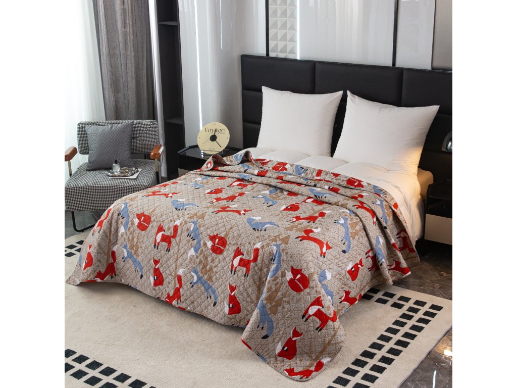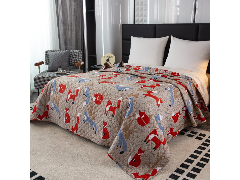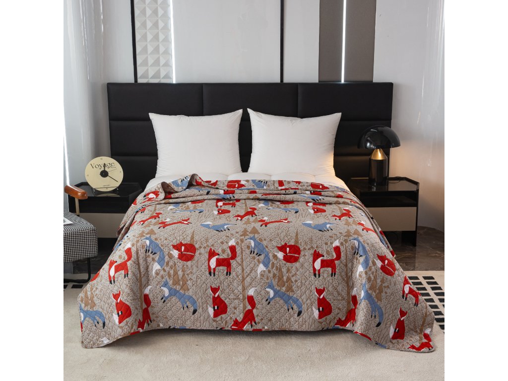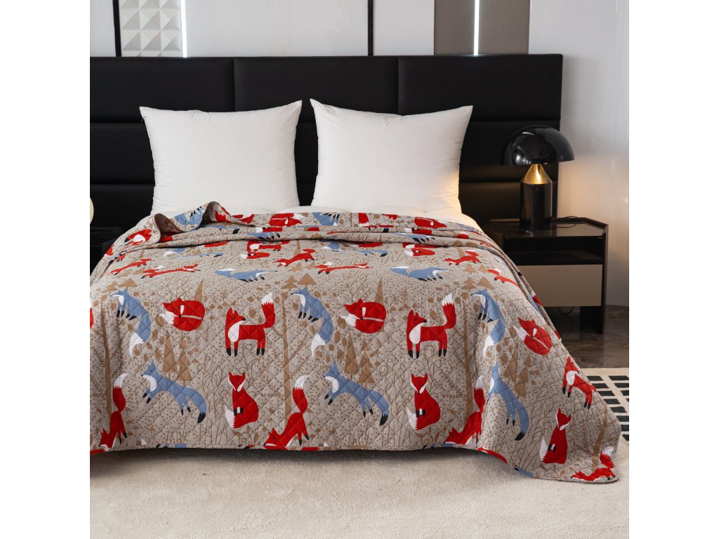 Stylový přehoz na postel ČERVENÁ LIŠKA hnědý s liščím motivem