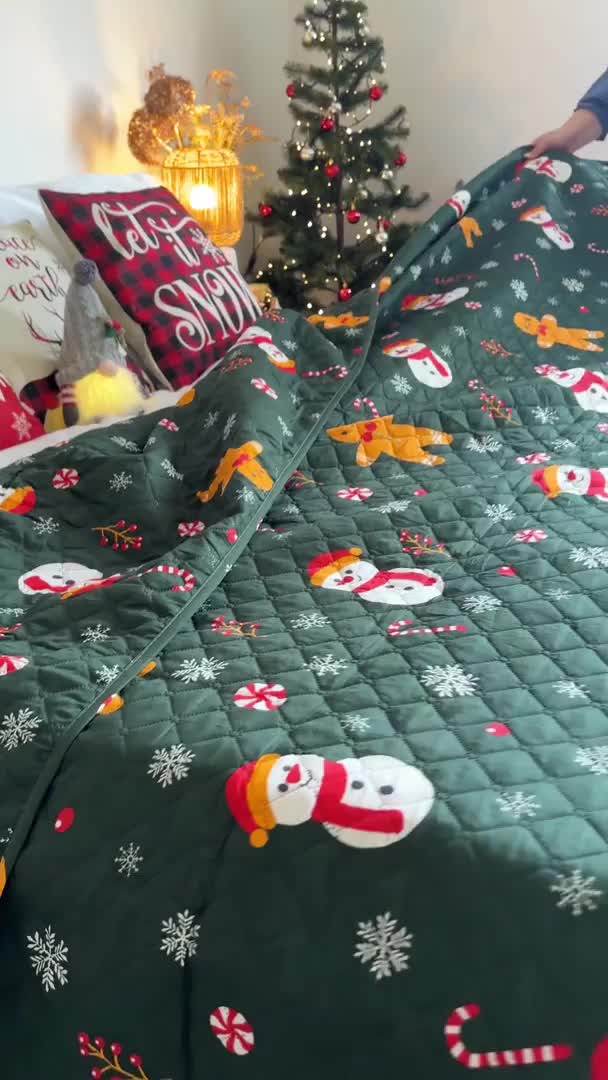 Tagesdecke SNOWMAN AND GINGERBREAD, grün