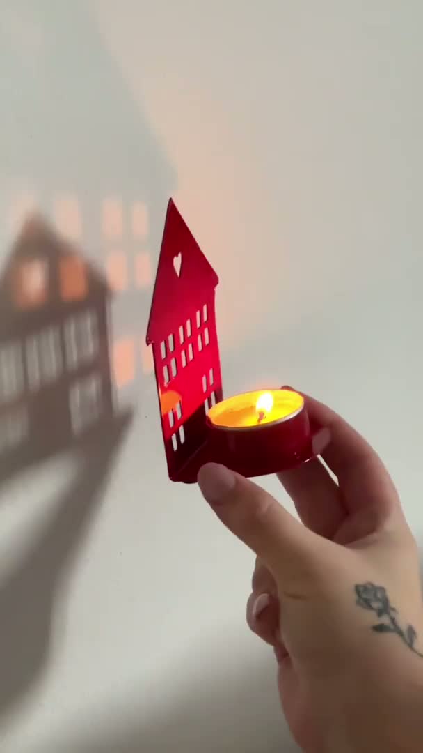 Teelichthalter TEALIGHT HOUSE FASSADE, rot