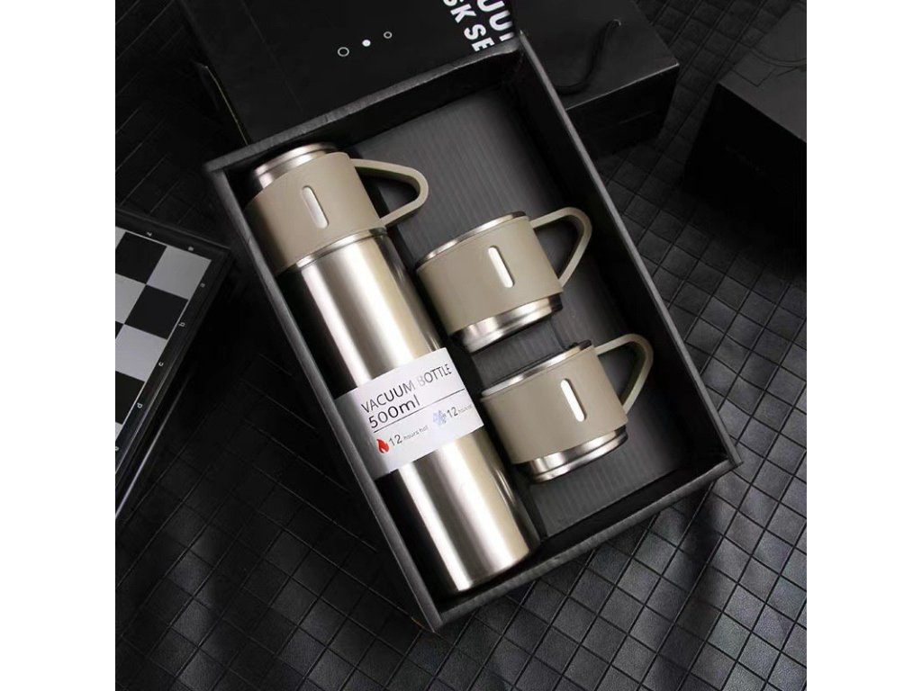 Thermoskanne 500 ml mit 3 Tassen HOT&COLD, beige