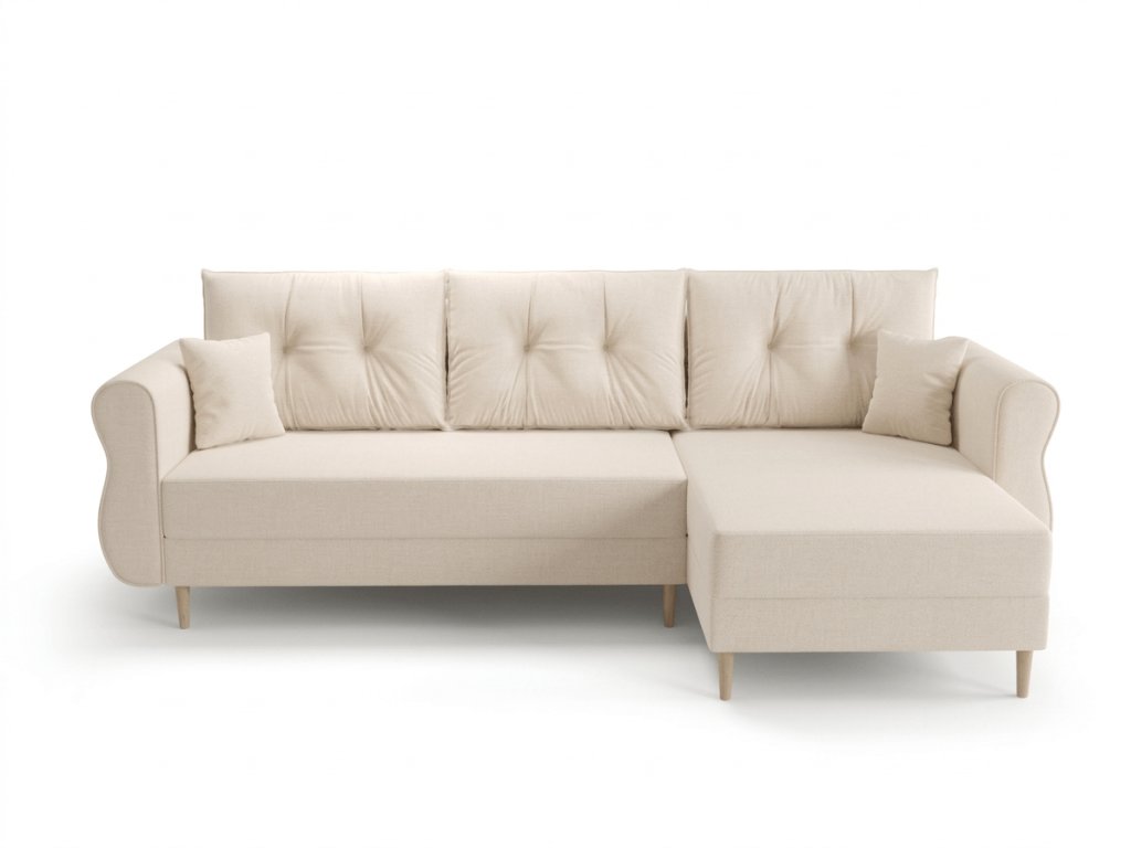 Umklappbares, beidseitiges Ecksofa SILVIANO 230x140 cm, cremefarbig Cosmic 10