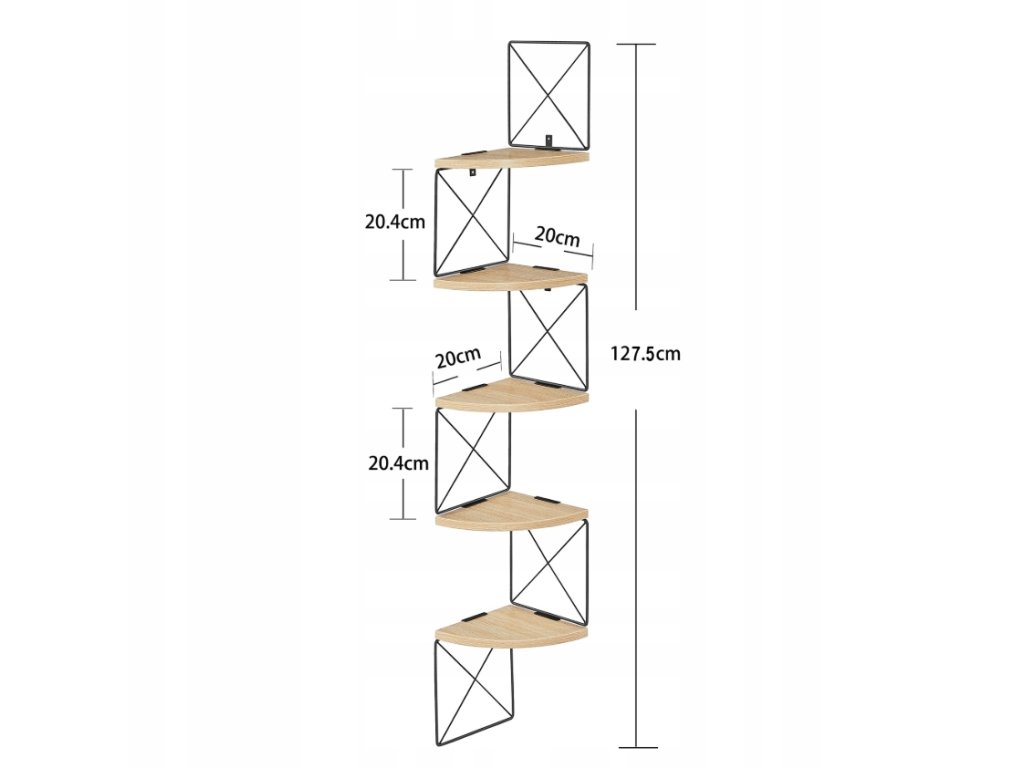 Dieses Eckregal ist eine ausgezeichnete Wahl für kleinere und größere Räume, wo es Platz spart und dem Interieur Leichtigkeit verleiht. Die stabile Metallkonstruktion garantiert Stabilität und Langlebigkeit, während die einfache Wandmontage eine schnelle Platzierung im Wohnzimmer, Schlafzimmer oder Arbeitszimmer ermöglicht.