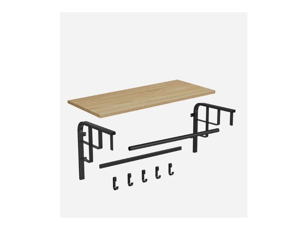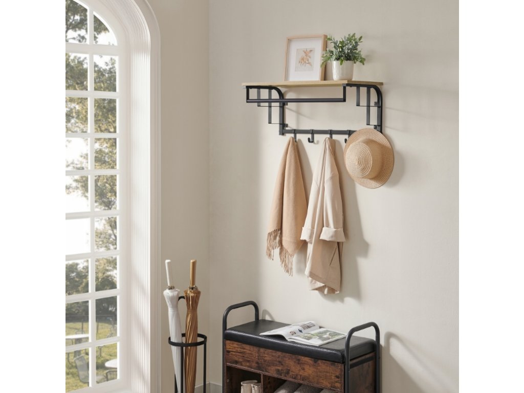 - Kombination aus Regal, Haken und Hängeleiste