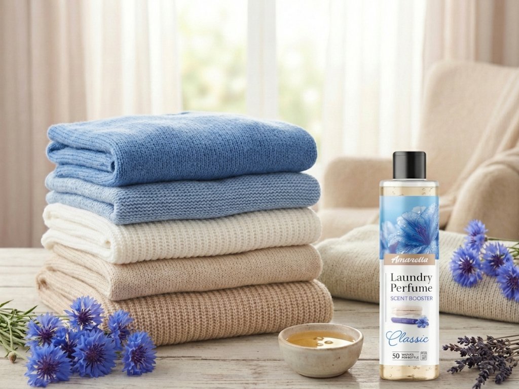 Wäscheparfüms AMARELLA sind hochkonzentrierte parfümierte Öle, die für eine einfache und effektive Erfrischung Ihrer Kleidung entwickelt wurden. Dank fortschrittlicher Technologie verleihen sie Textilien langanhaltende Frische, Weichheit und makelloses Aussehen. Die Wäsche bleibt schön weich und duftend nach dem Trocknen und beim Tragen, sei es für Alltagskleidung, Handtücher oder Bettwäsche. AMARELLA hebt das normale Waschen auf ein neues Niveau und bietet einen intensiven Duft mit natürlich sanftem Gefühl – mühelos und mit maximalem Effekt.